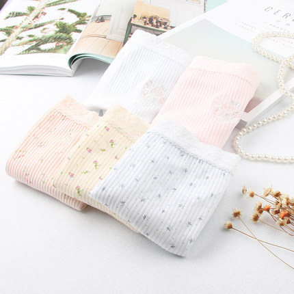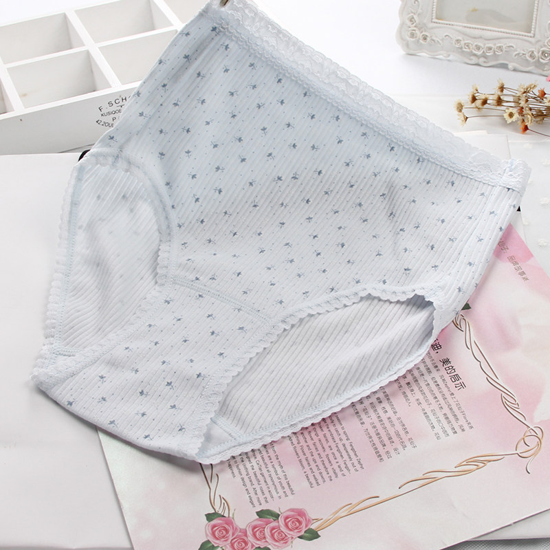 纯棉女士内裤甜美日单碎花白色全棉中高腰大码孕产后胖MM三角裤