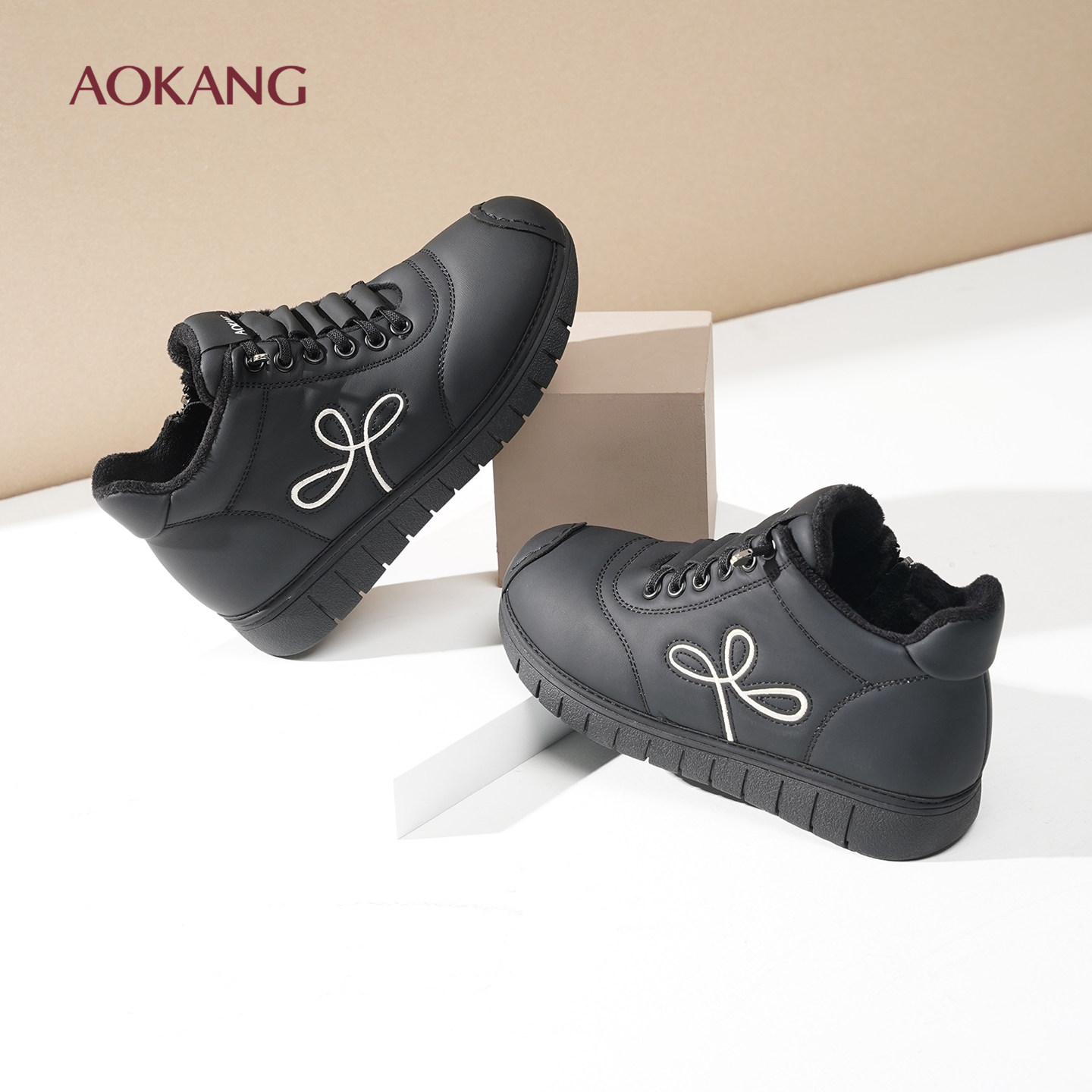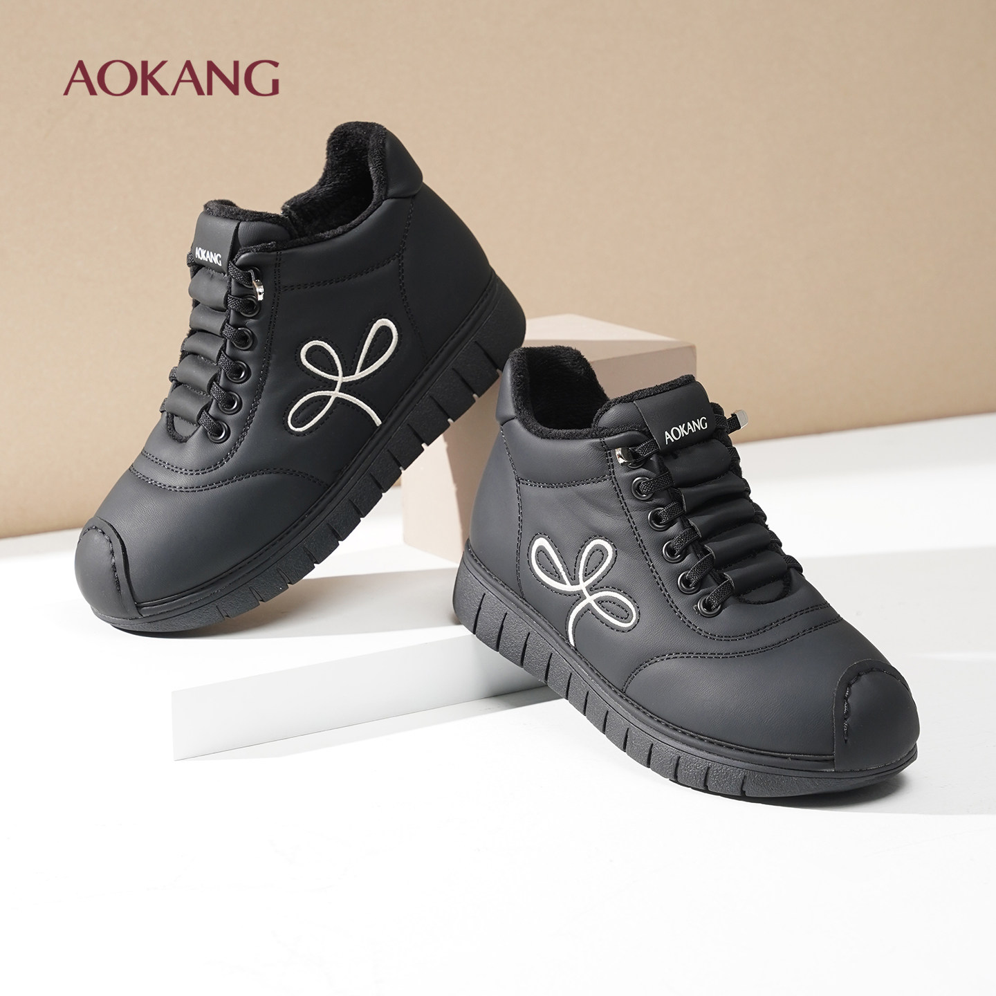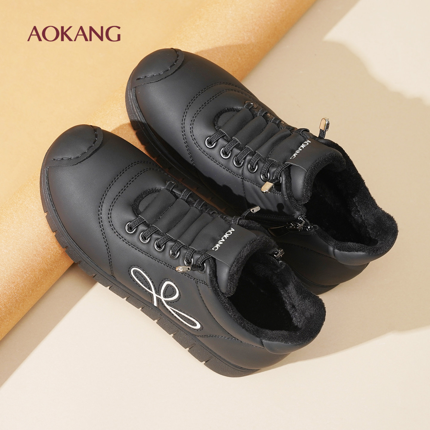 奥康 女鞋冬季新款高帮鞋加绒保暖妈妈棉鞋侧拉链平底防滑女棉靴L