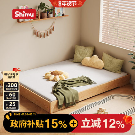 地板床实木蒙氏儿童床1米2小孩男孩女孩房间床儿童房小床地台床