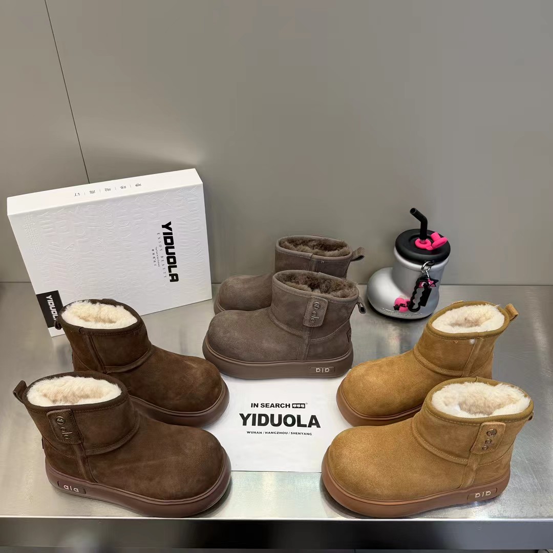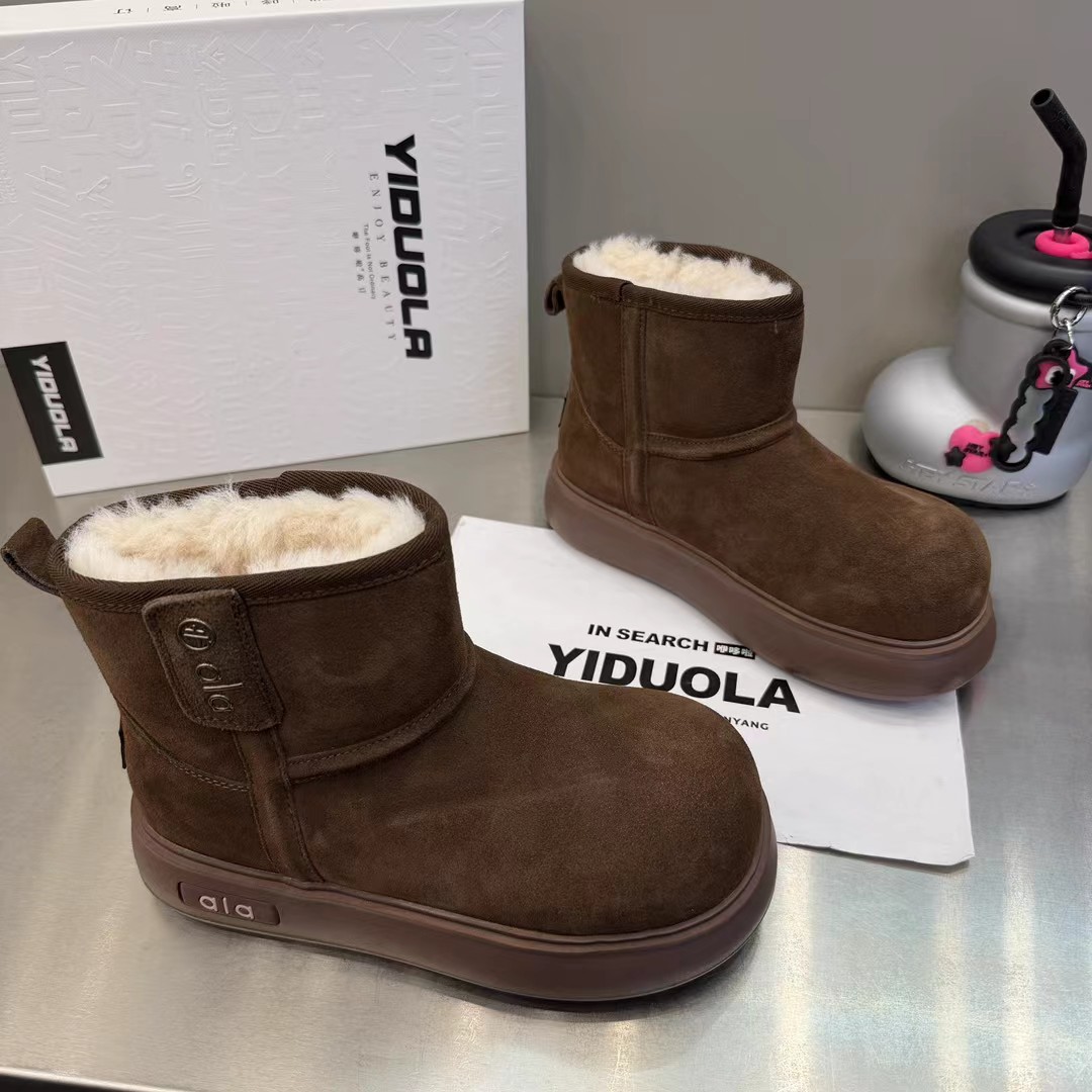 2025冬季加绒保暖雪地靴女真皮牛皮短靴磨砂皮东北人外穿大棉鞋