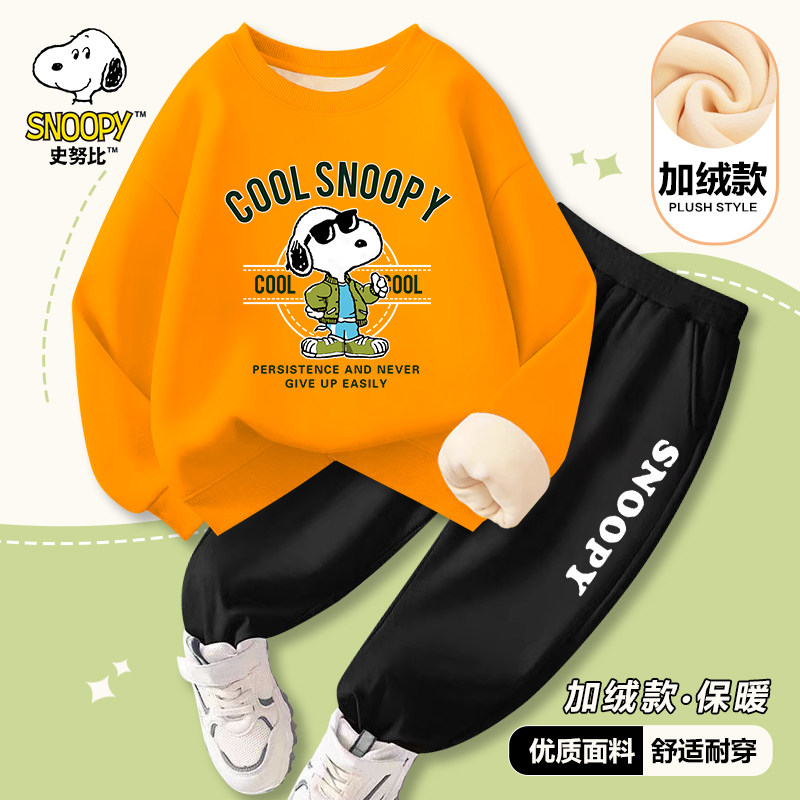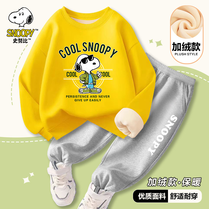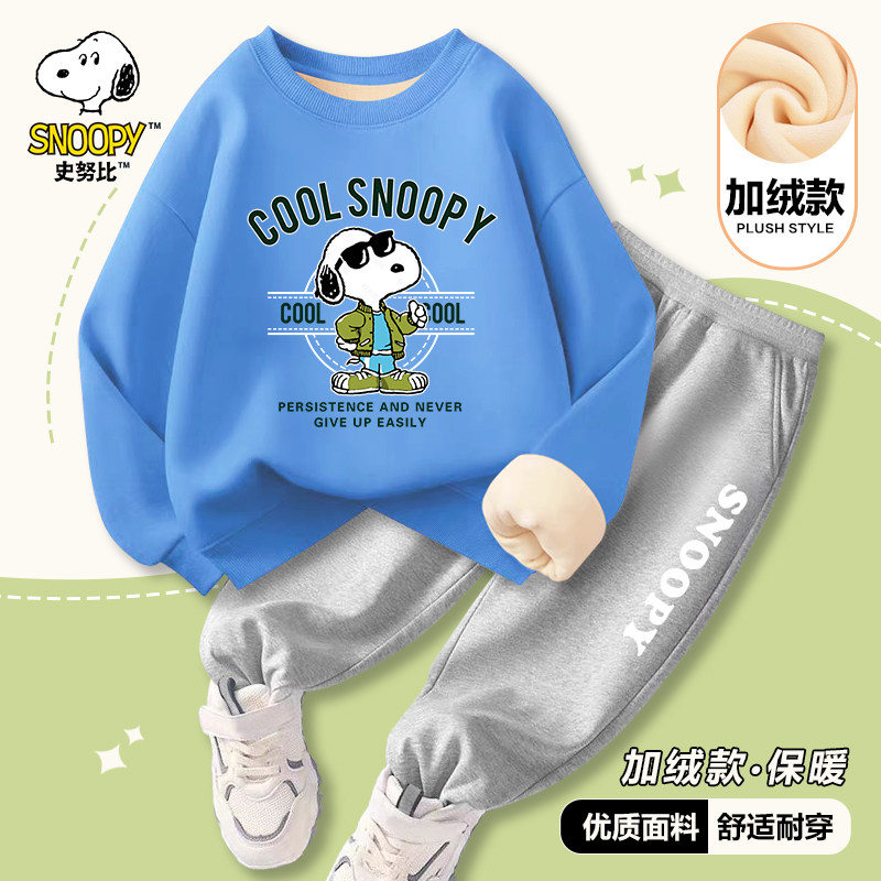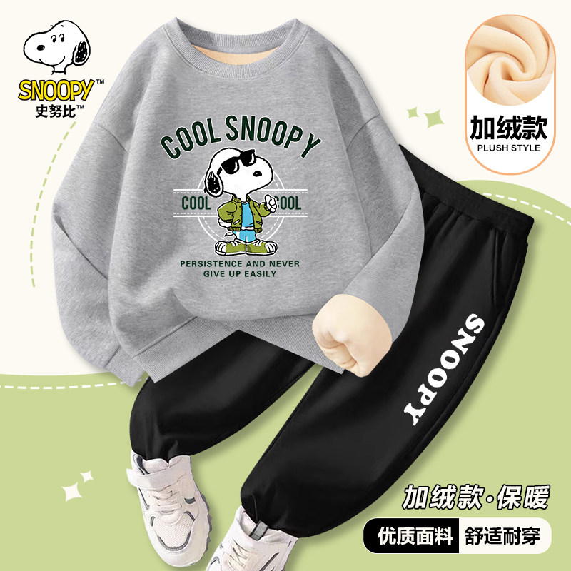 史努比男童卫衣套装2024秋冬新款洋气儿童装休闲宝宝冬装两件套潮