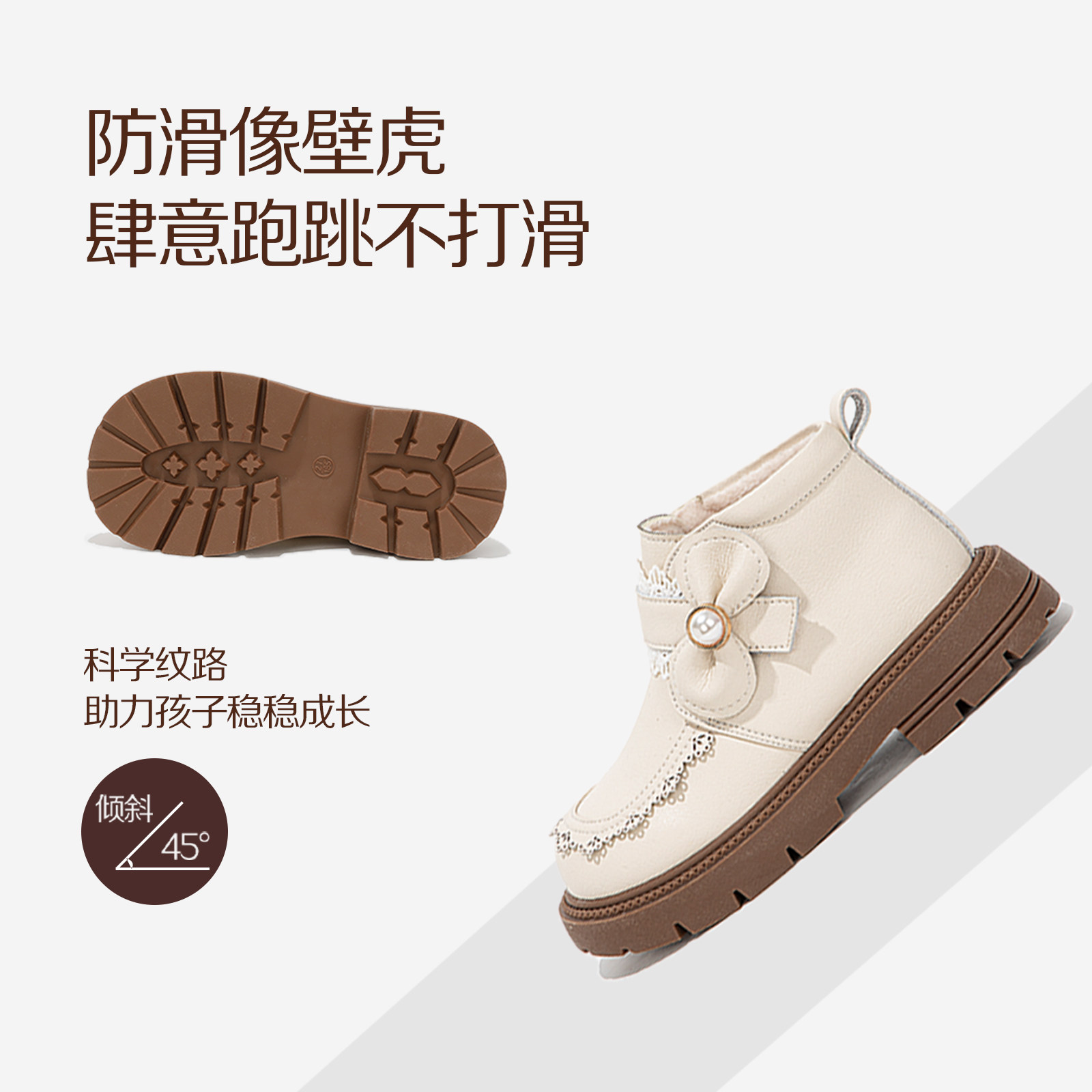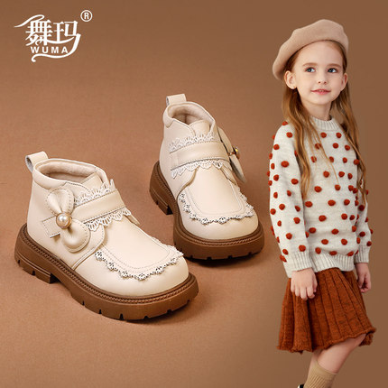 舞玛女童鞋儿童真皮短靴子2025新款宝宝冬季小女孩加绒二棉鞋鞋子