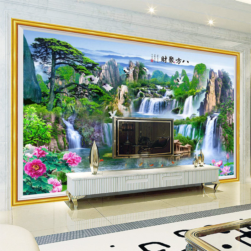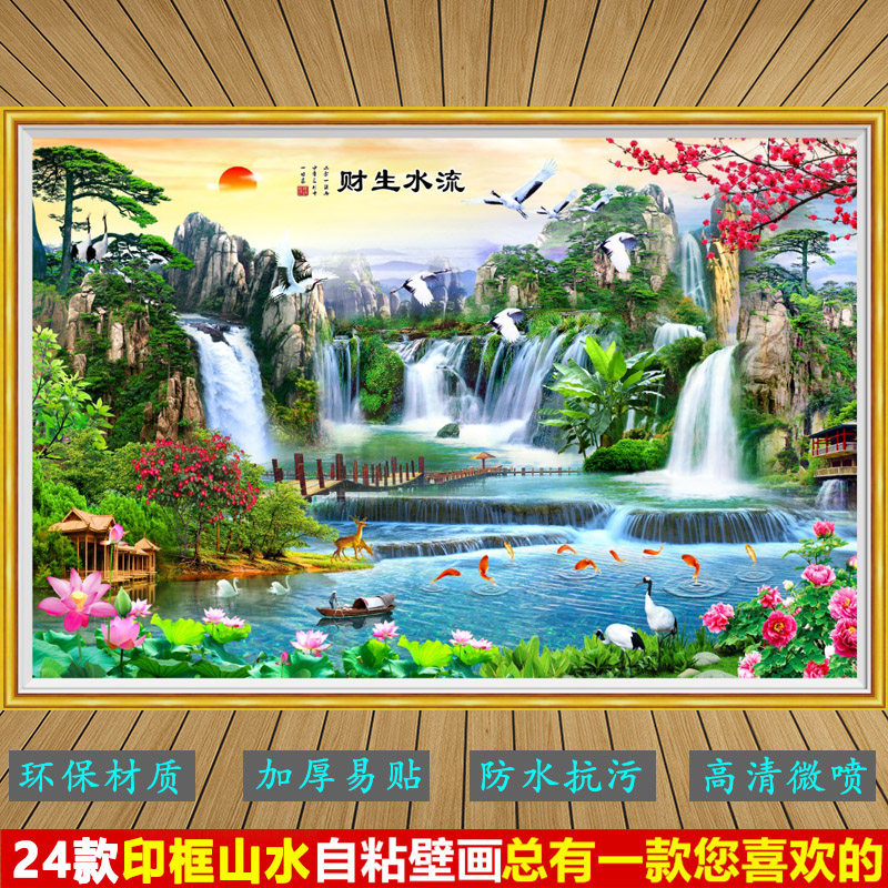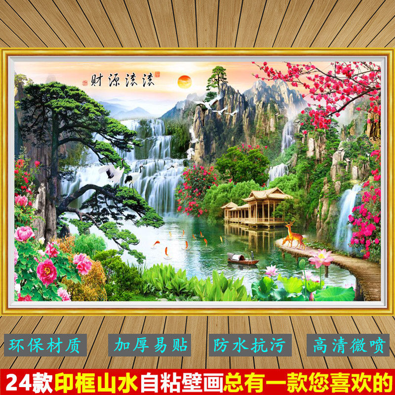 壁画山水画印框自粘墙贴画壁纸客厅沙发电视背景墙防水风景装饰画