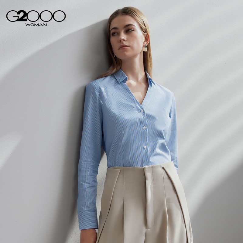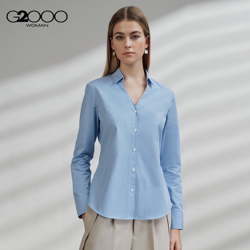 【全棉/条纹/商场同款】G2000女装2025秋舒适亲肤正装长袖衬衫.