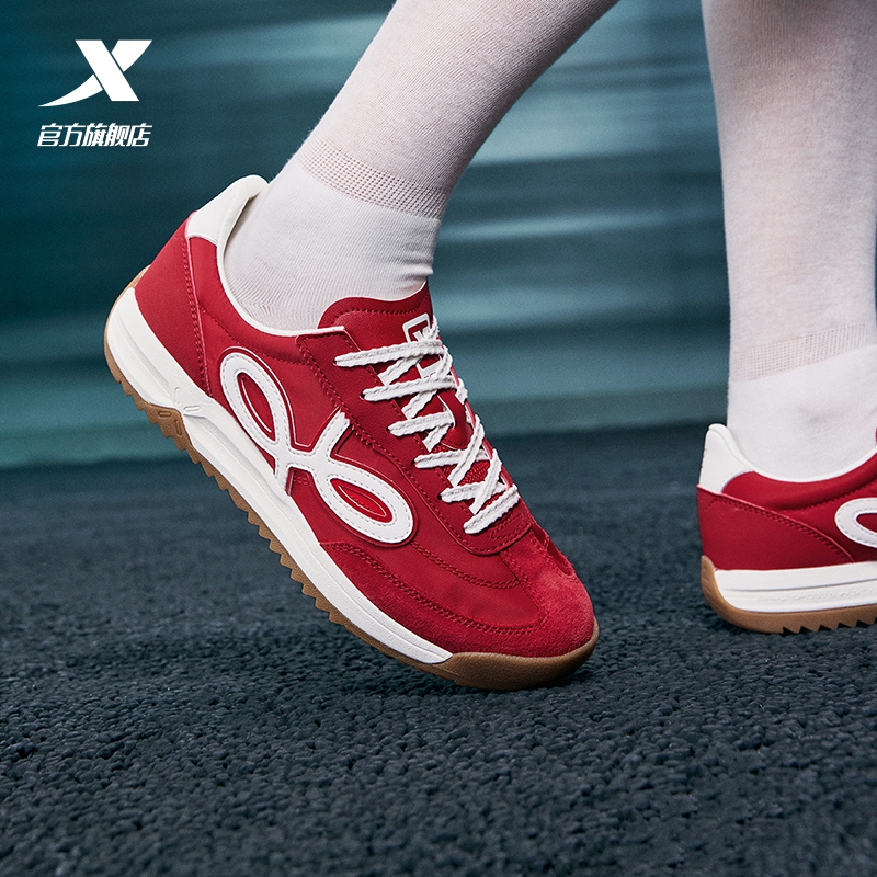 特步小野花丨休闲鞋女鞋新款轻便复古德训鞋T头鞋薄底赛车运动鞋
