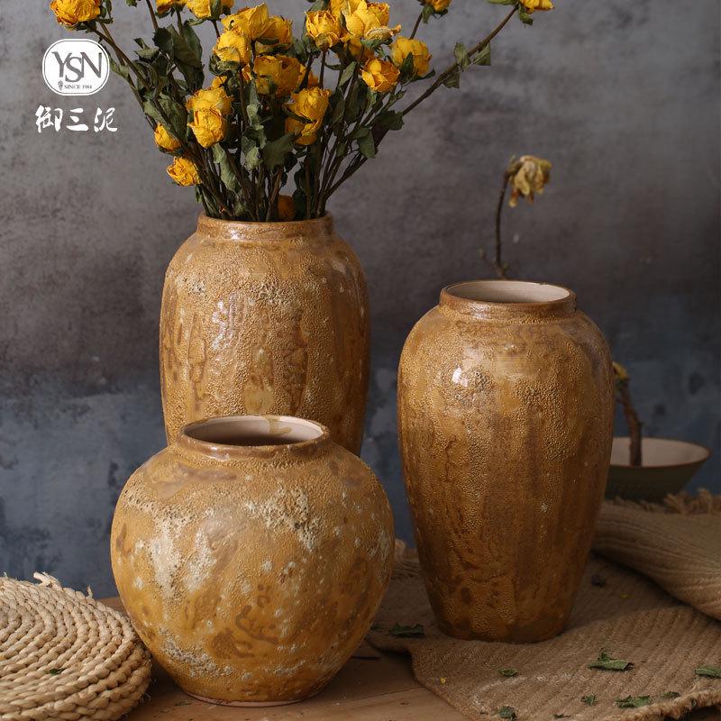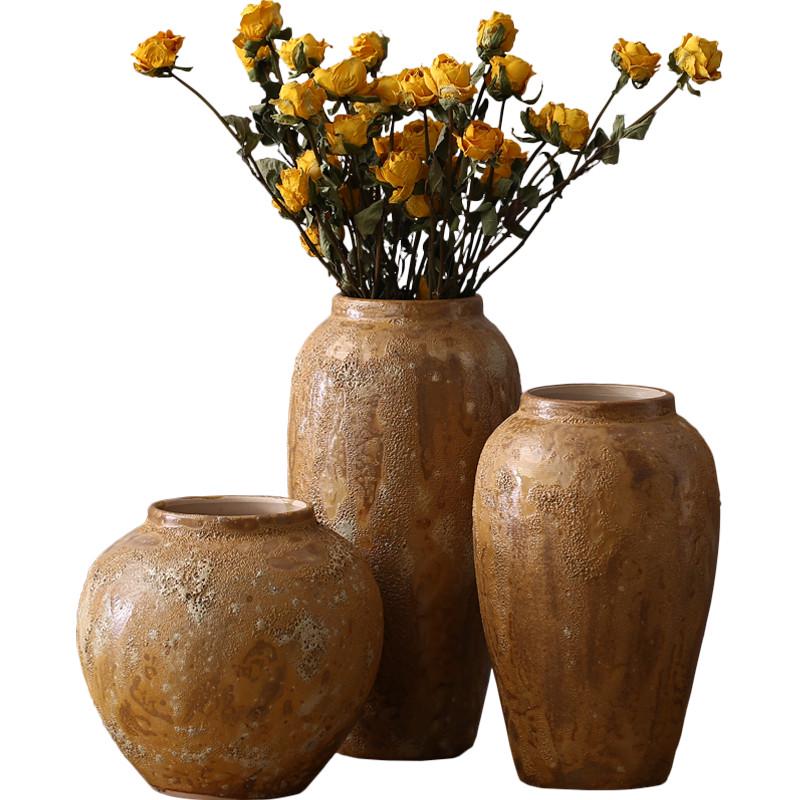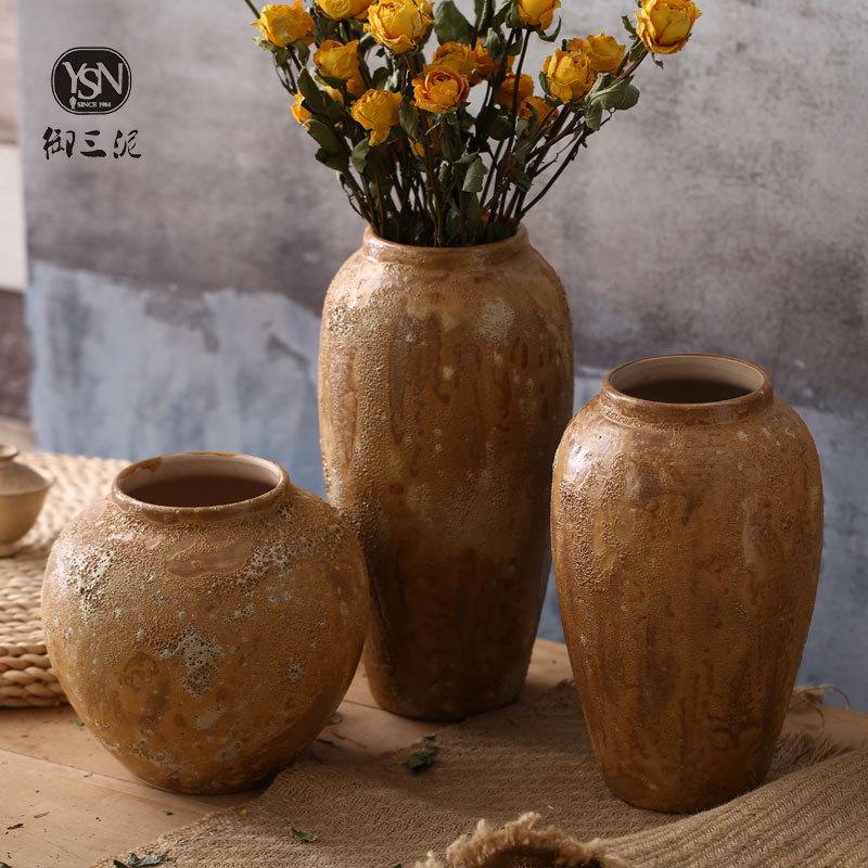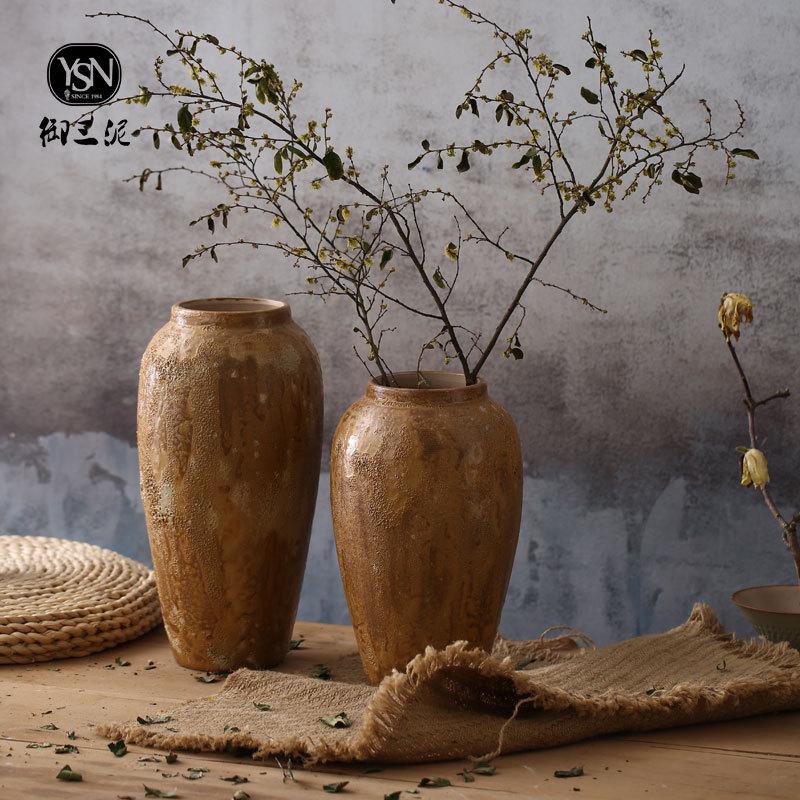 现代简约干花可水培日式小清新花瓶手工粗陶罐盆栽摆件花器土陶