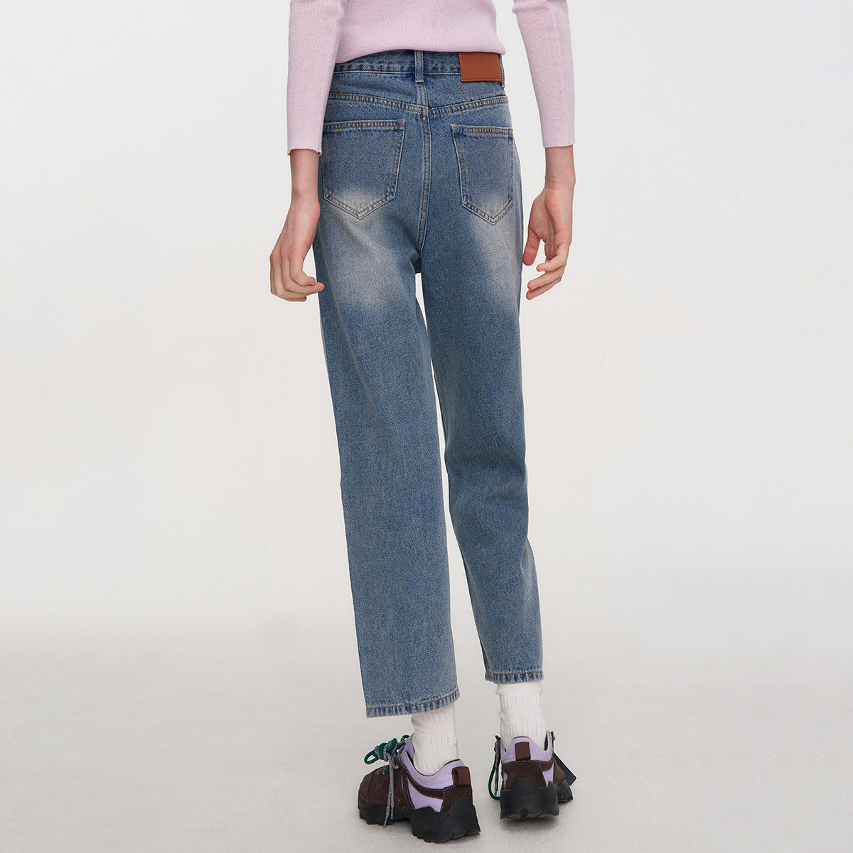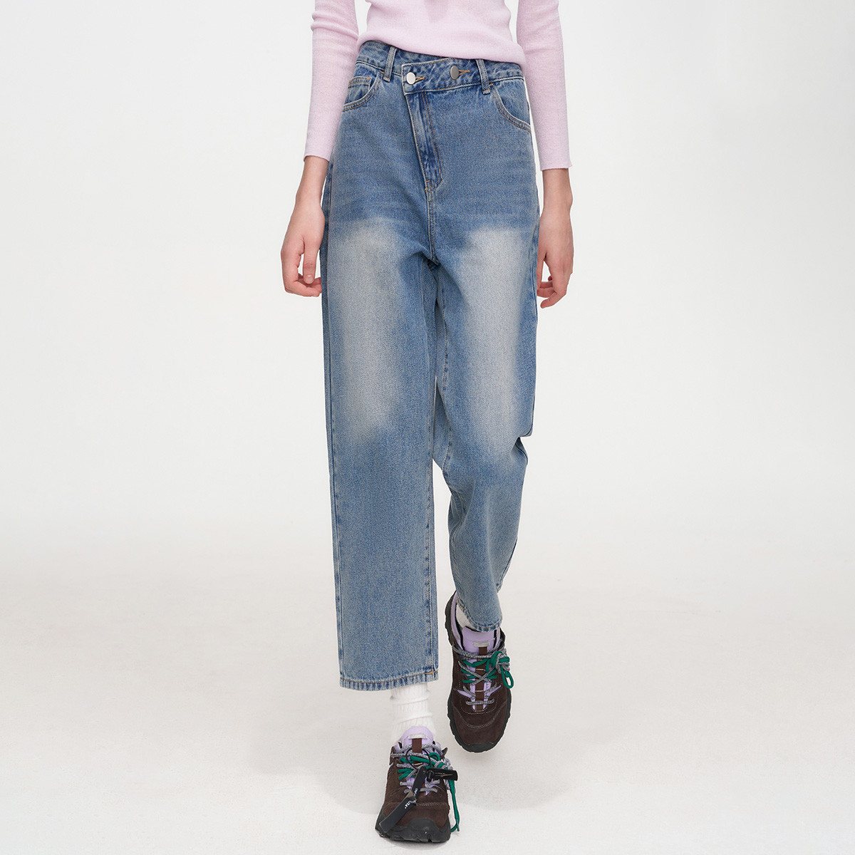 FOREVER 21设计感不对称门襟直筒女士牛仔裤2025秋新款哈伦裤长裤