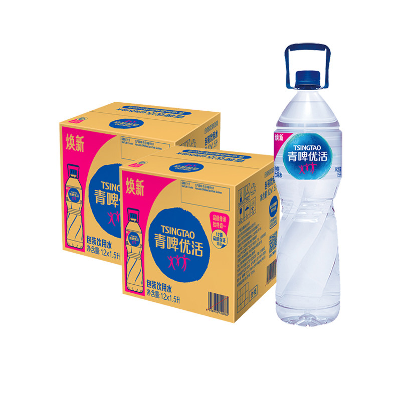 青啤优活 饮用水非矿泉水 1.5Lx12瓶x2箱大瓶生活家庭量贩