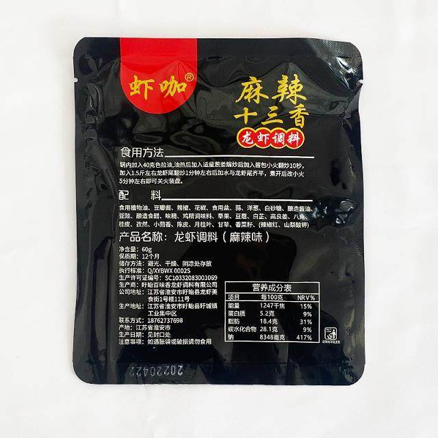 虾咖麻辣十三香龙虾调料 盱眙小龙虾商用秘制专用虾尾底料60g/包