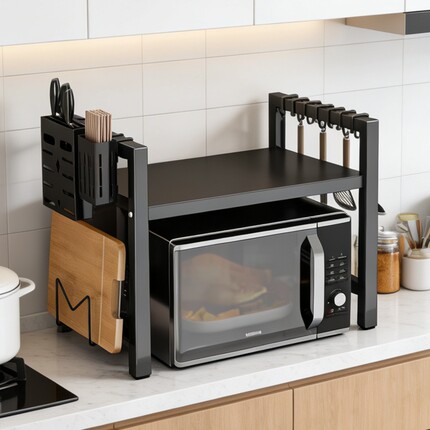 厨房微波炉置物架可伸缩家用台面桌面双层电饭锅烤箱收纳橱柜支架