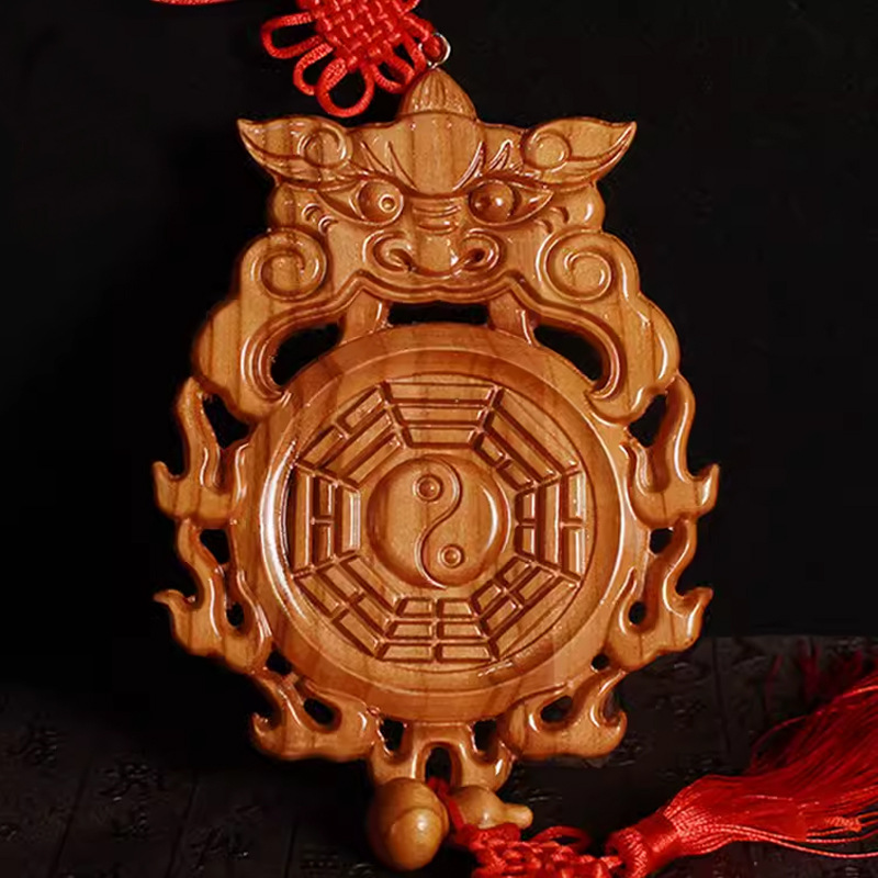 兽虎头八卦镜桃木雕刻解决厕所对大门卧室厨房门卫生间九星钱挂件