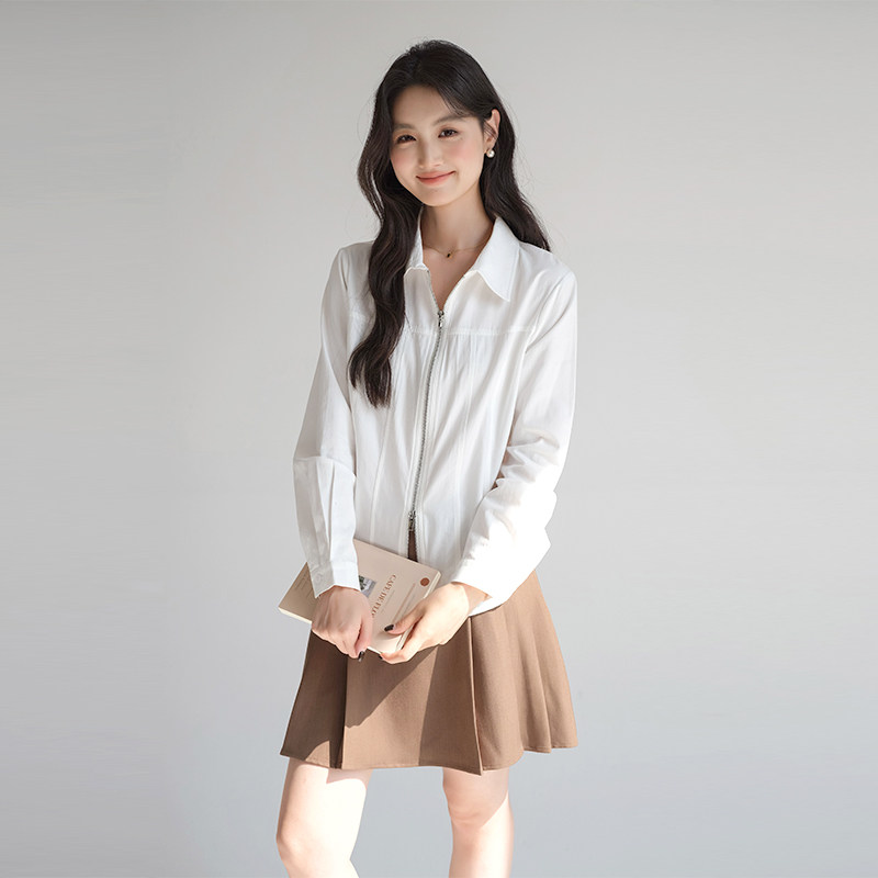 蓝若水双拉链衬衫百搭修身显瘦
