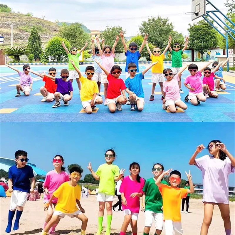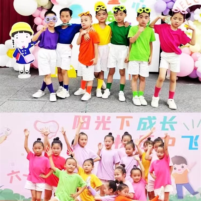 儿童夏季糖果彩色短袖T恤小学生纯棉毕业表演班服幼儿园亲子装