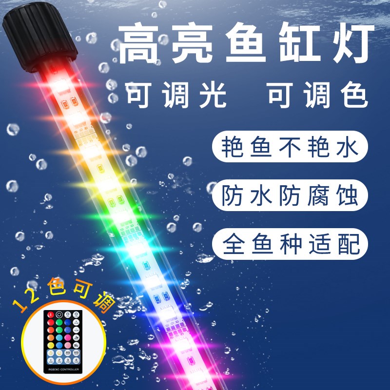 LED鱼缸灯观赏增艳七彩防水遥控龙鱼缸灯水草照明潜水灯28cm包邮