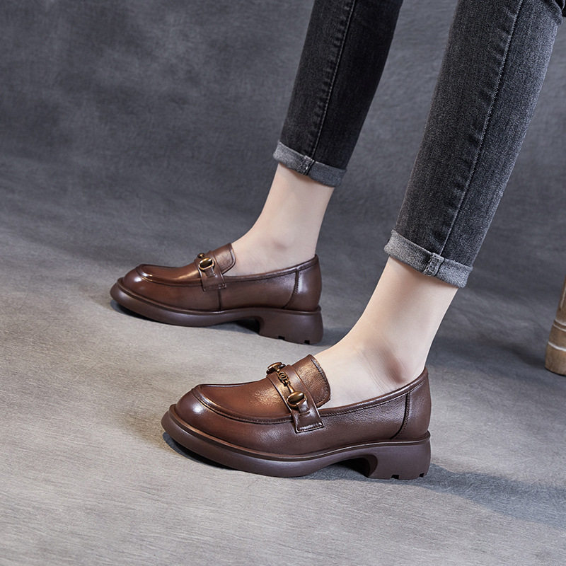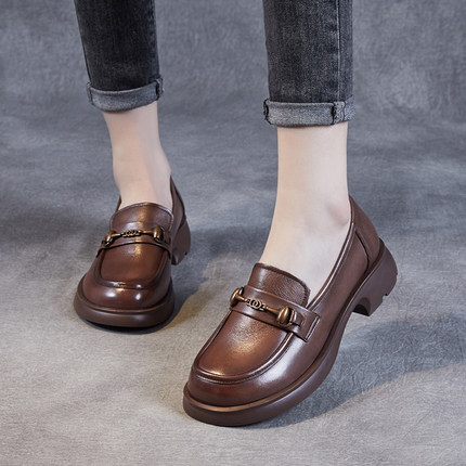 法式复古小皮鞋女2025秋季新款真皮百搭乐福鞋英伦风圆头浅口单鞋