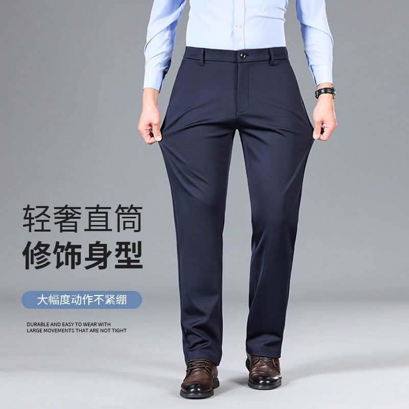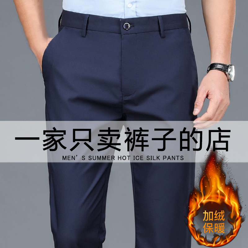 男士高端商务休闲裤秋季厚款弹力加绒加厚直筒高腰深档大码西装裤
