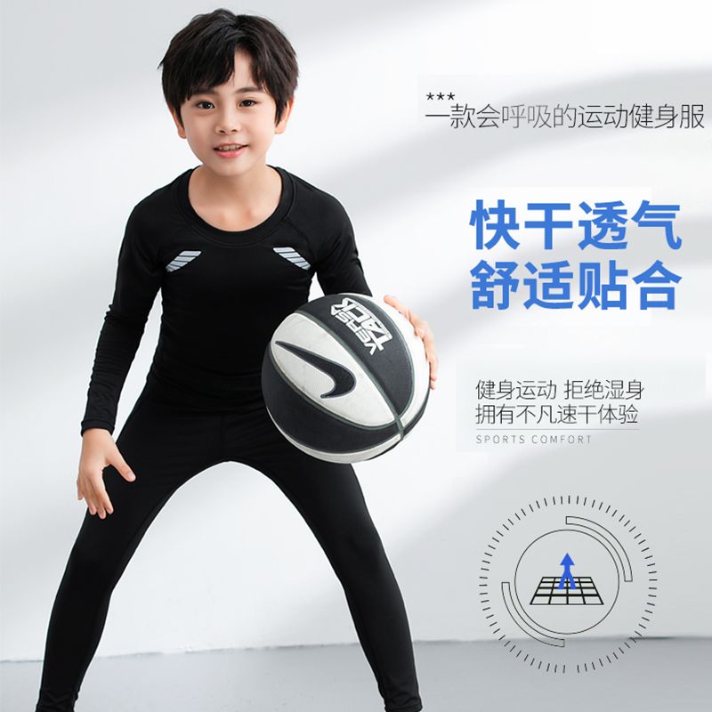 儿童紧身衣训练服学生运动套装打底服篮球足球速干衣男童男孩健身