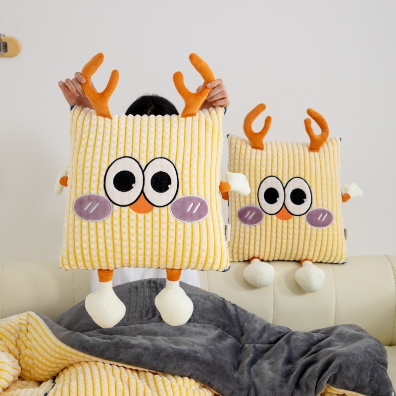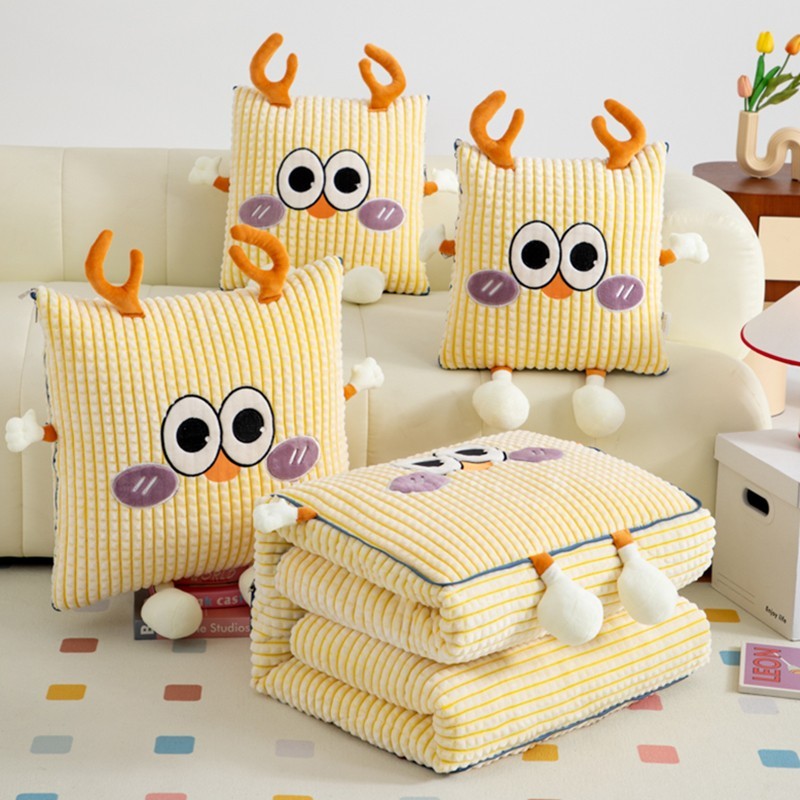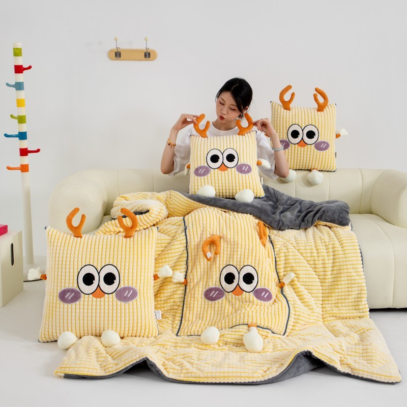 卡通牛奶绒抱枕被子两用加厚二合一折叠汽车载沙发靠垫枕头午睡被