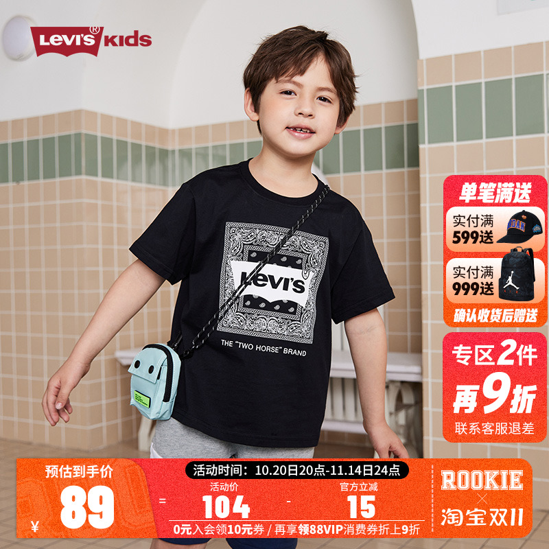 Levi's李维斯童装男童纯棉宽松短袖T恤儿童夏装女童中大童上衣潮