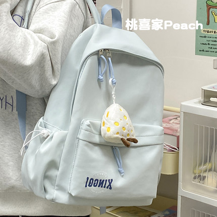 百搭大学生书包女纯色韩版ins风初中高中学生双肩包轻便电脑背包