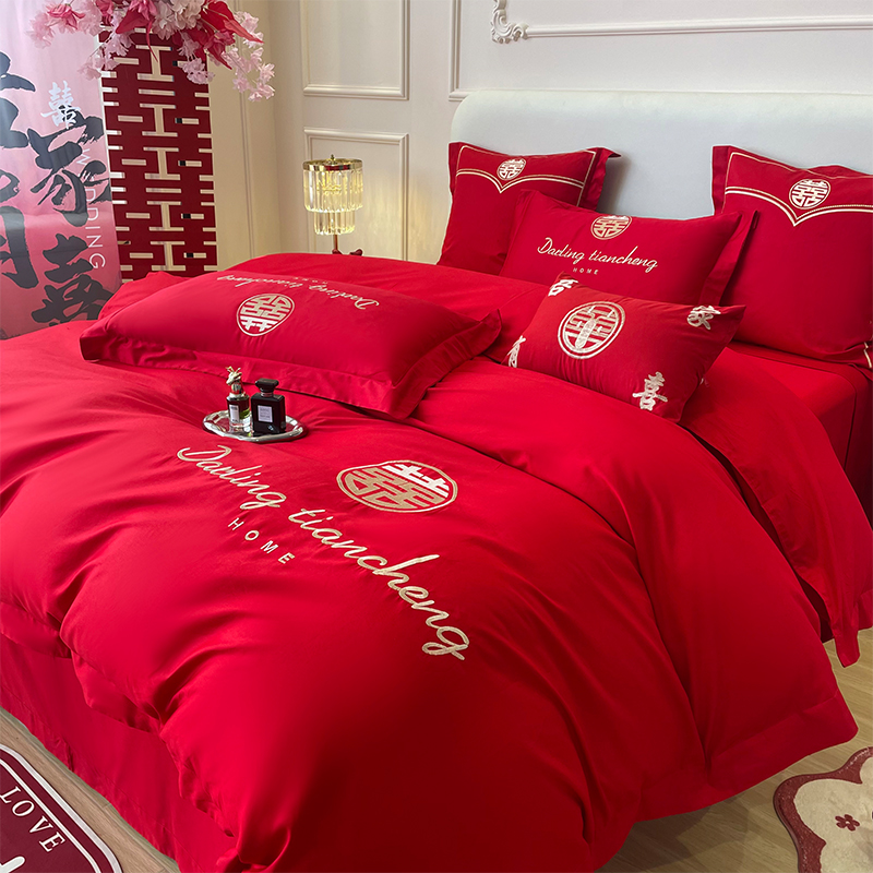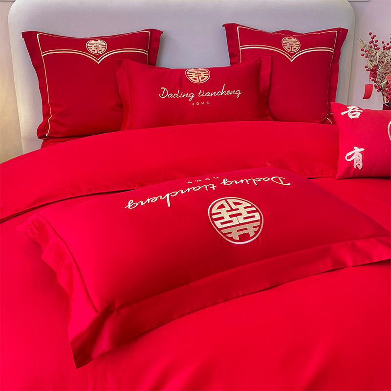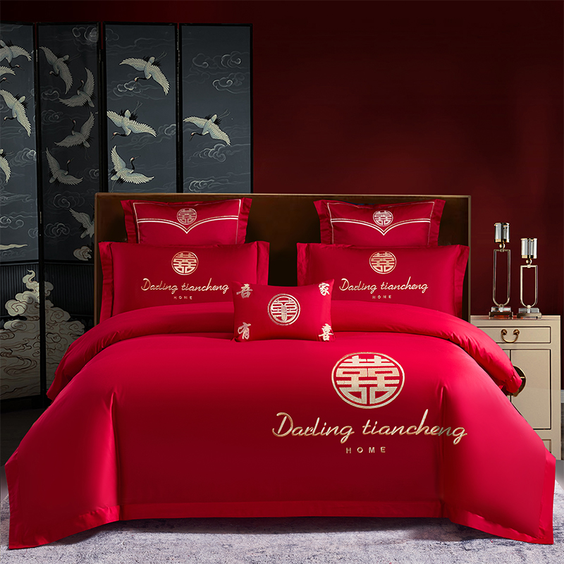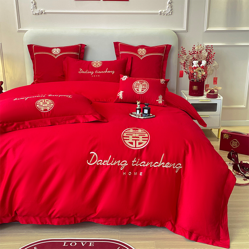 水星家纺婚庆四件套全棉刺绣被套