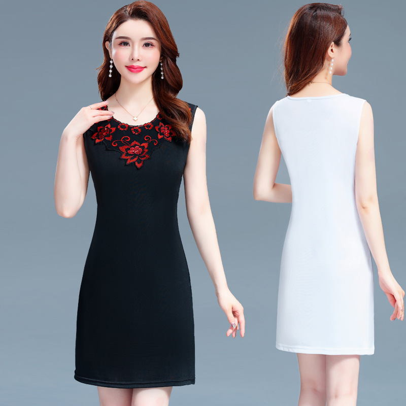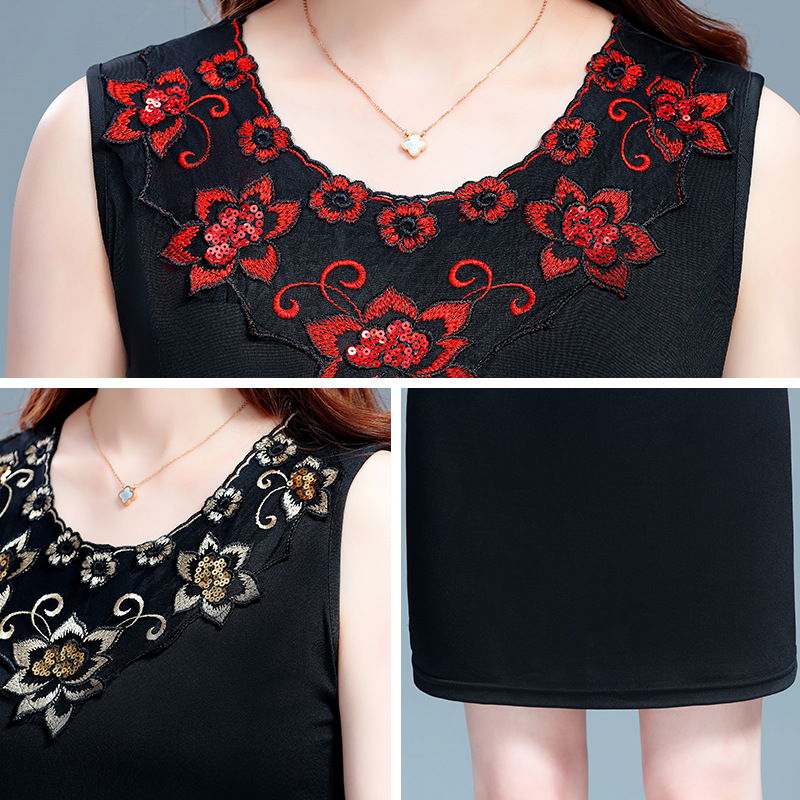 中长无袖小背心女中国风领花刺绣小吊带遮肉内搭小衫外穿连衣裙