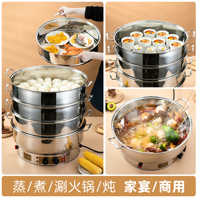 不锈钢电蒸锅多功能家用三层蒸笼大容量蒸锅电蒸箱节能蒸包子商用
