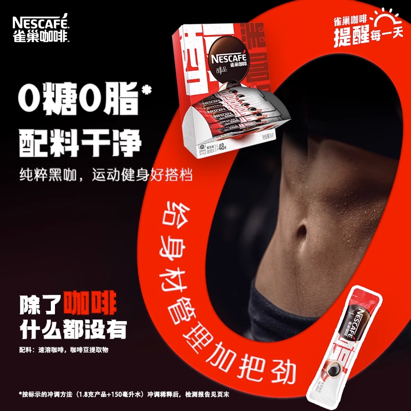 雀巢黑咖啡醇品速溶美式纯黑咖粉无糖0脂提神减燃正品官方正品店
