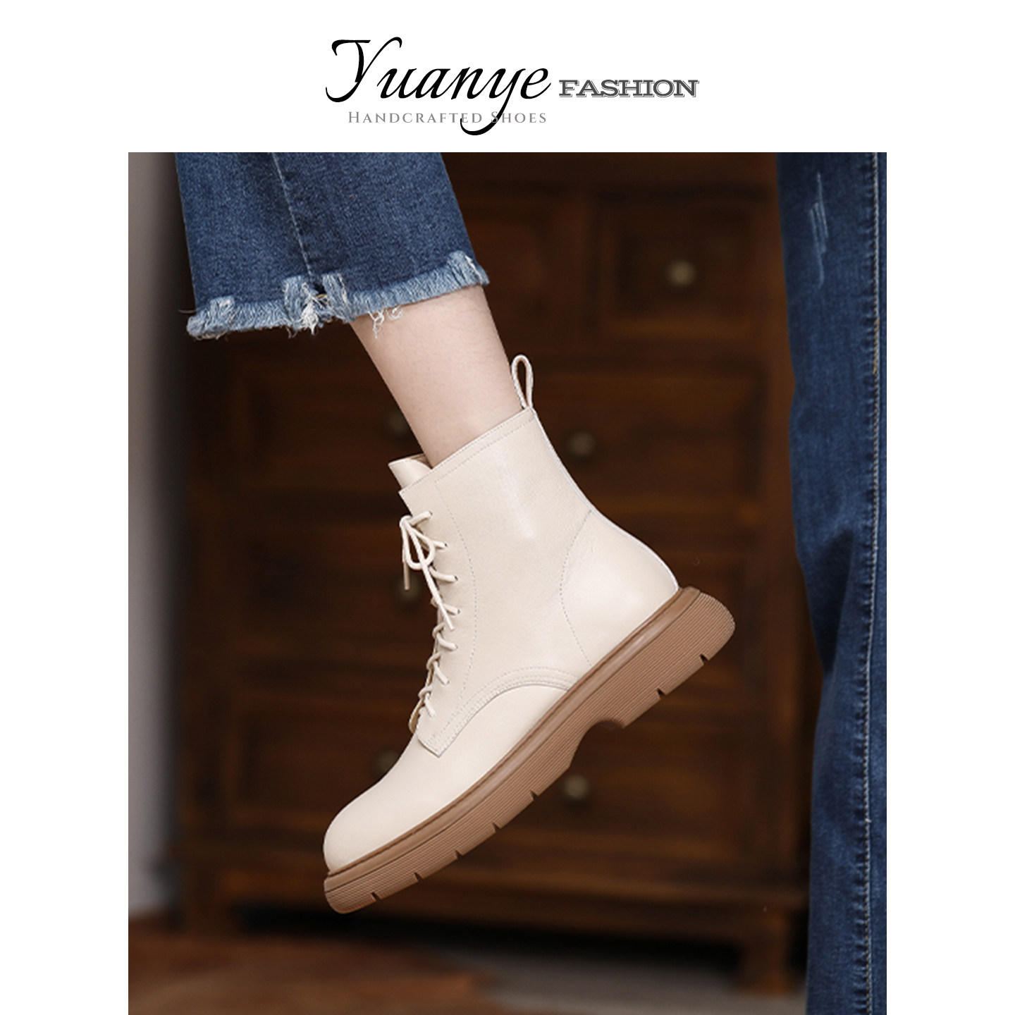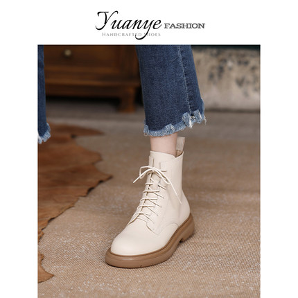 原野白色厚平底马丁靴女英伦风系带真皮短靴子冬季单靴2025年新款