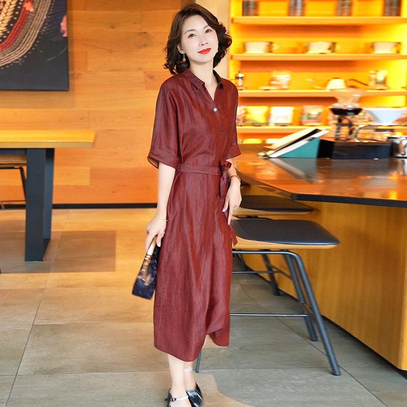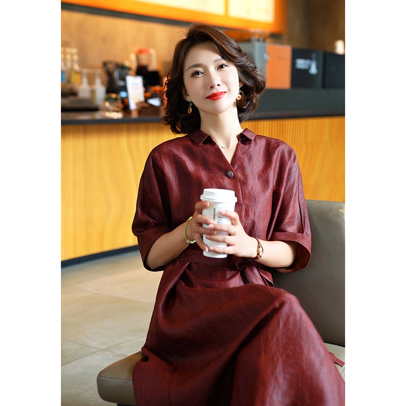 杭州真丝连衣裙中国风古典红云纱裙子女2025夏季新款桑蚕丝香云纱