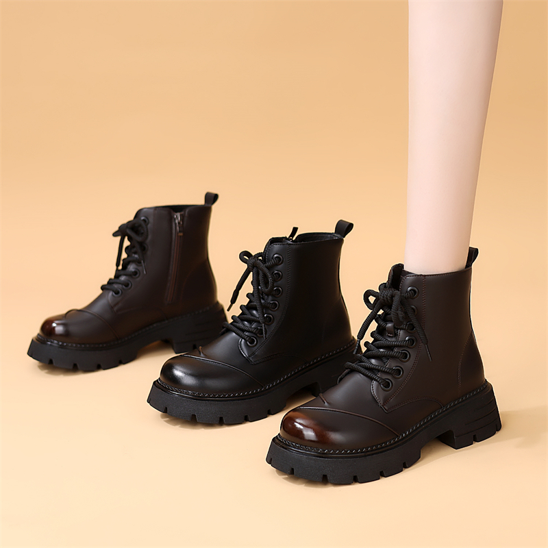 英伦厚底马丁靴女2025年秋冬新款加绒保暖显脚小轻便软底圆头短靴
