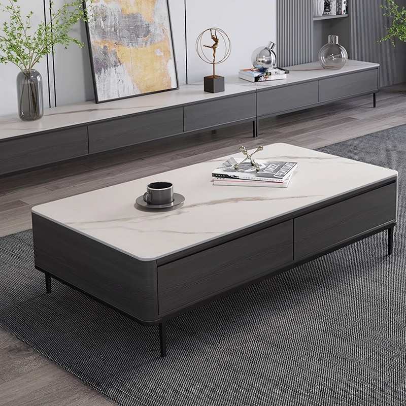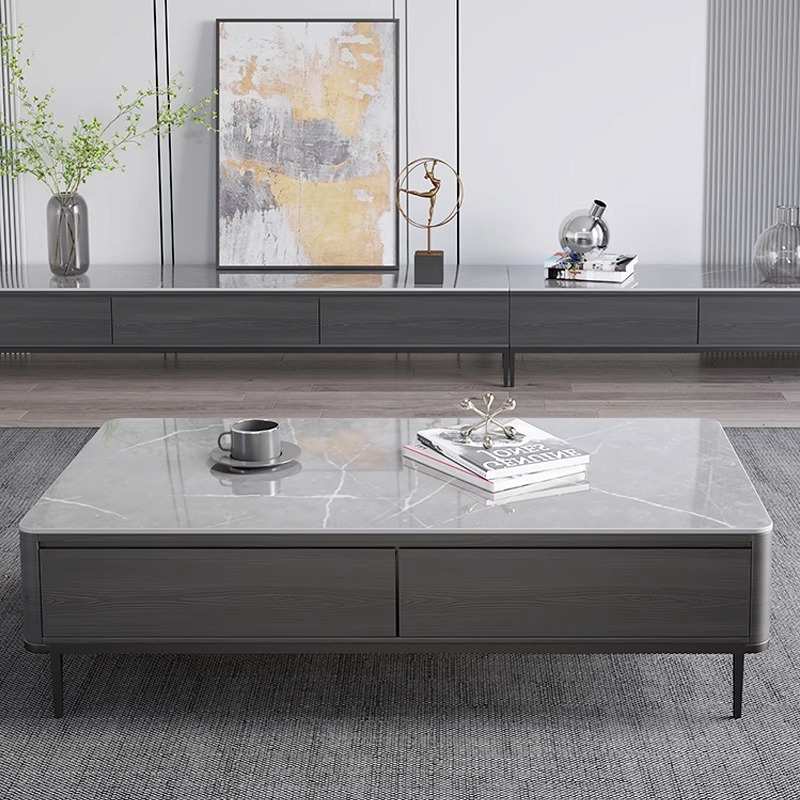 岩板2025年新款电视柜茶几组合实木落地电视机柜简约现代客厅家用
