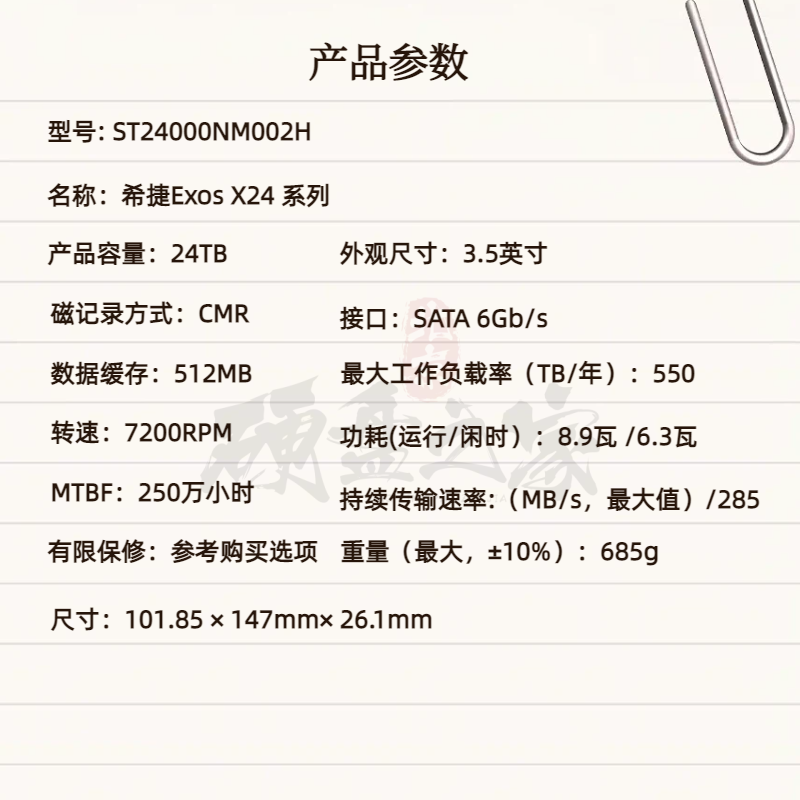 全新盒装国行 希捷X24系列 ST24000NM002H银河24TB氦气企业级硬盘