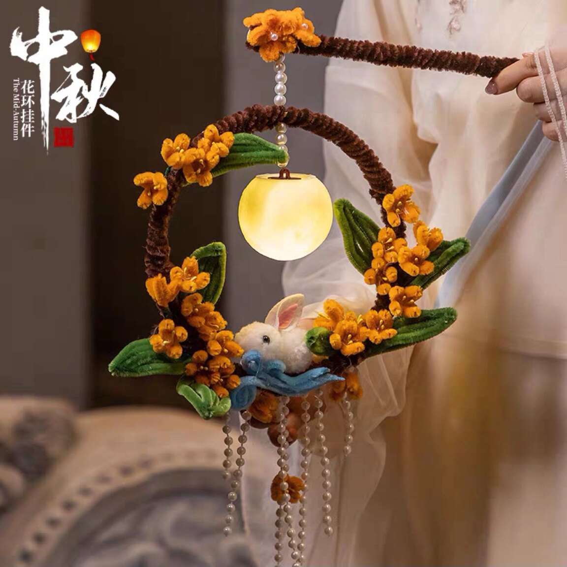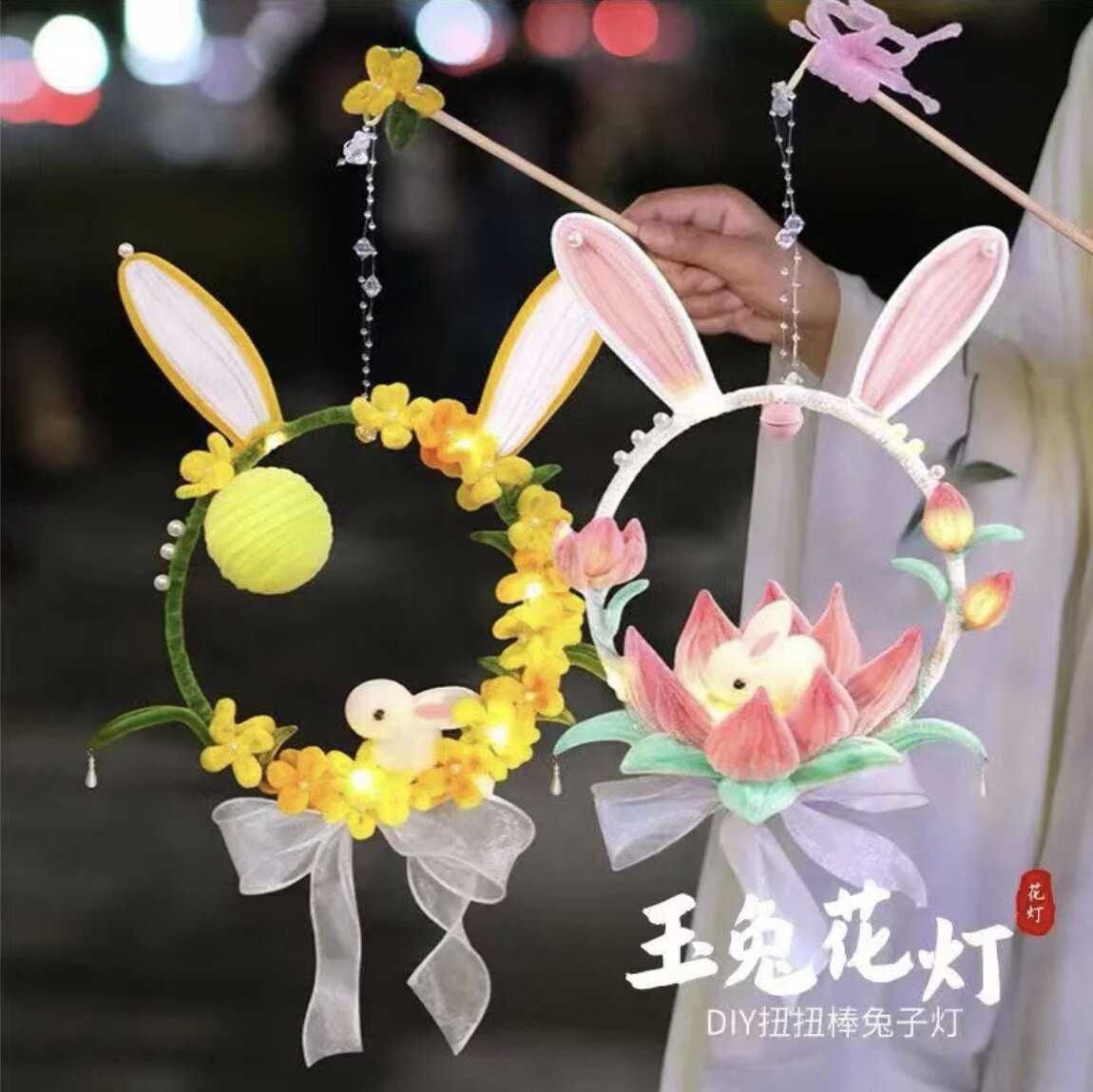 中秋节灯笼桂花荷花花灯儿童手提挂饰扭扭棒手工DIY材料包幼儿园