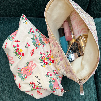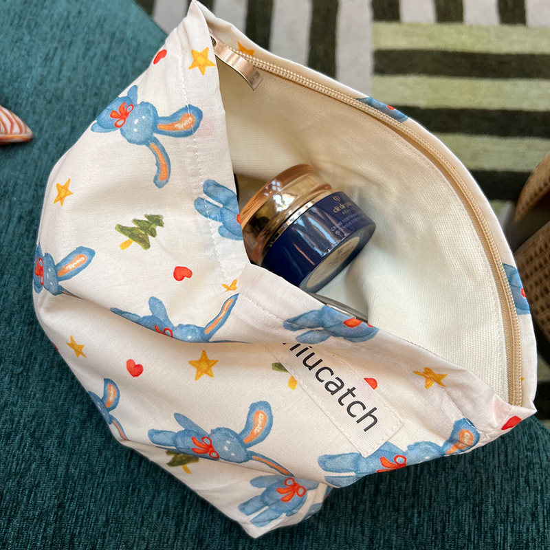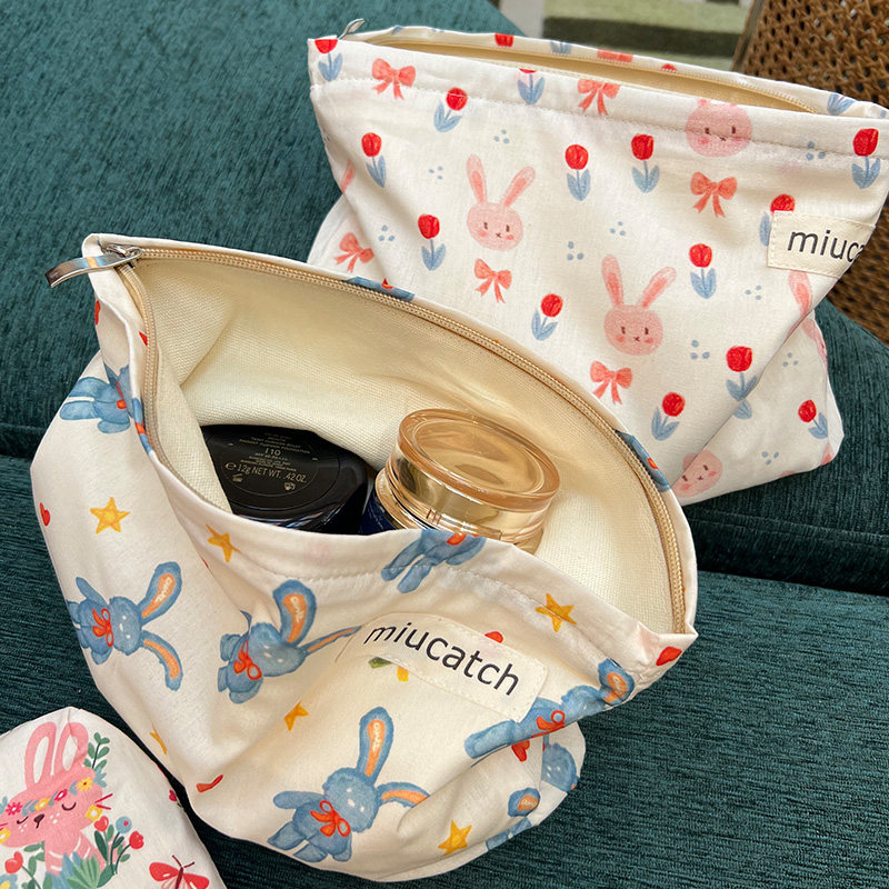 美摘便携卡通兔子花朵棉布化妆包