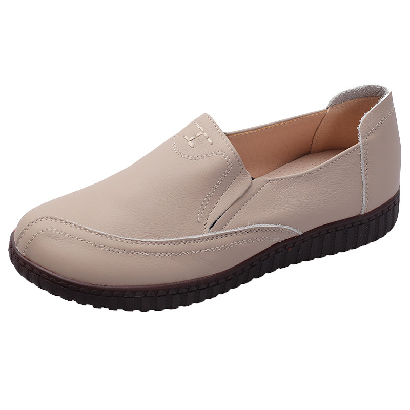 真皮软底豆豆鞋女懒人平底妈妈鞋