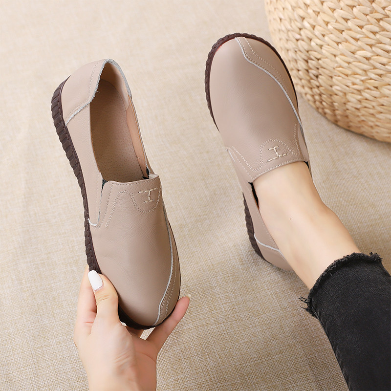 真皮软底豆豆鞋女春秋冬款一脚蹬懒人平底鞋防滑牛筋底孕妇妈妈鞋