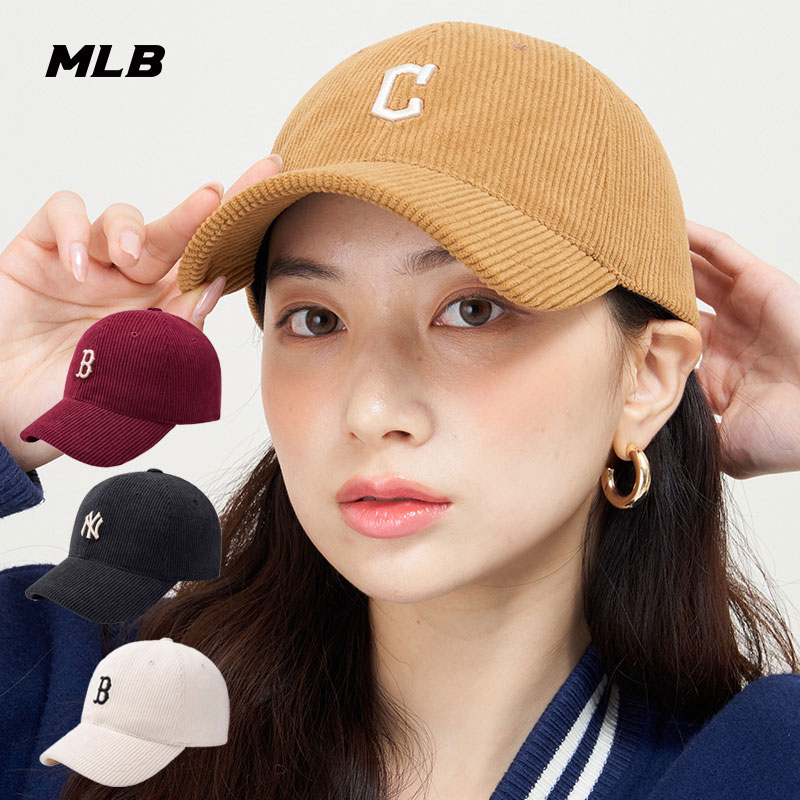 MLB秋冬帽子NY刺绣logo男女灯芯绒软顶鸭舌帽运动棒球帽3ACPWC136