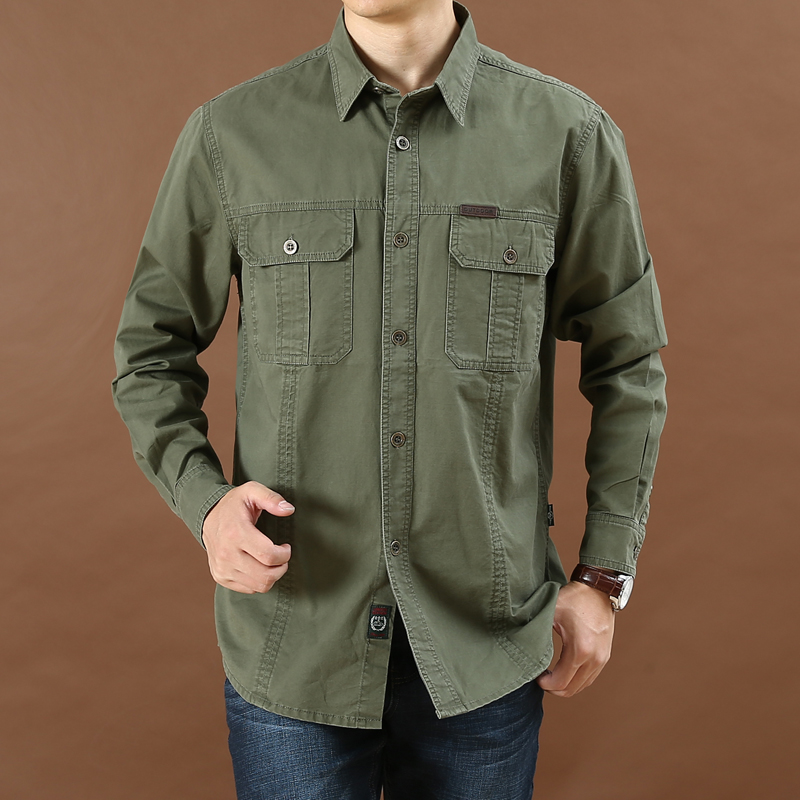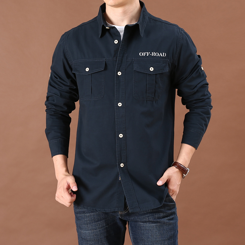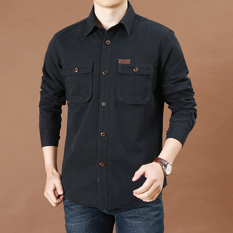 2025秋季宽松衬衫男长袖水洗纯棉多袋工装衬衣男装商务休闲寸衫潮