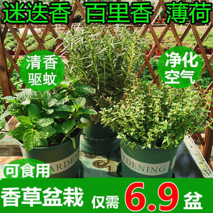 可食用香草迷迭香百里香薄荷甜罗勒紫苏欧芹盆栽食品级烘焙香料