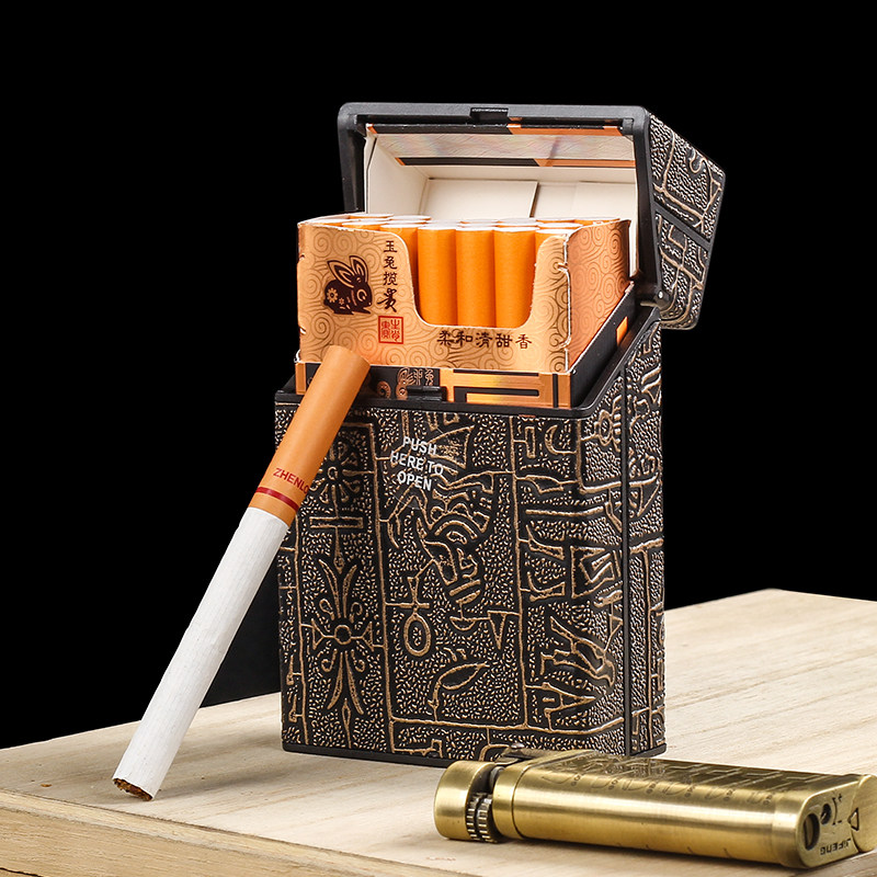 男士粗烟20支装烟盒埃及花纹塑料收纳盒便携防压翻盖烟盒整盒可装