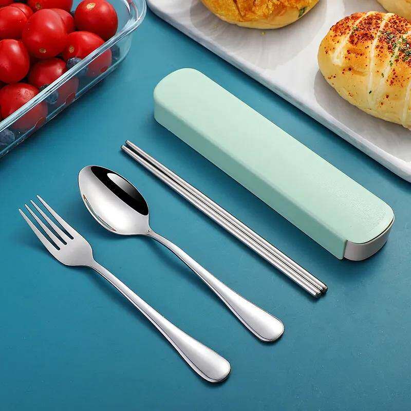 筷子勺子叉子套装便携式餐具三件套不锈钢旅行餐具小学生便携餐具