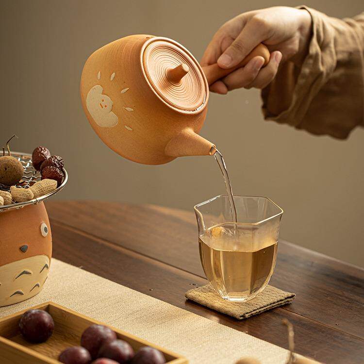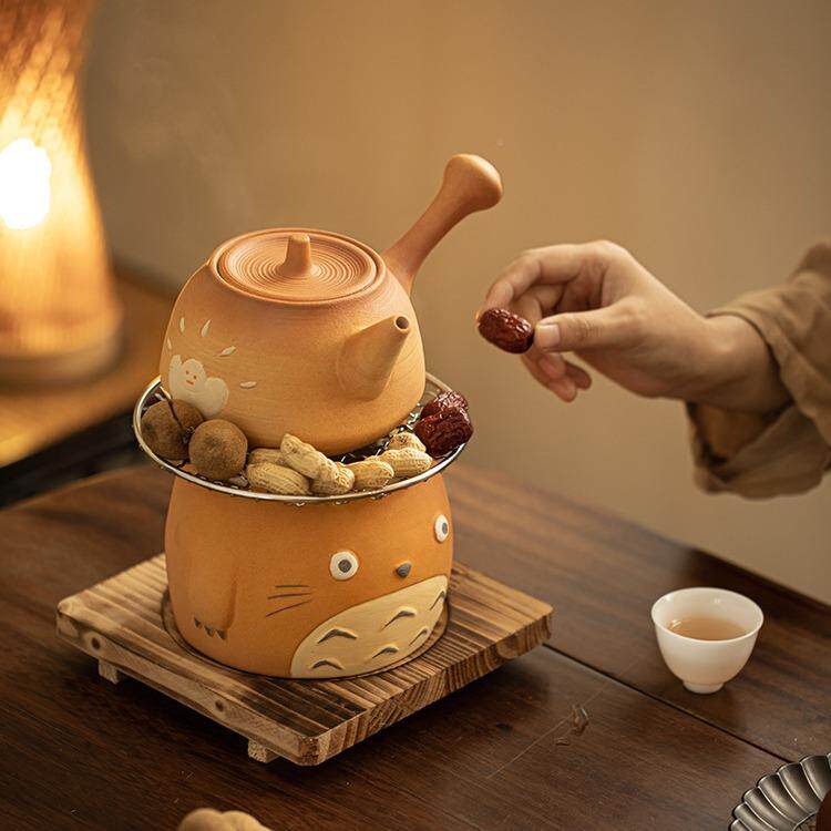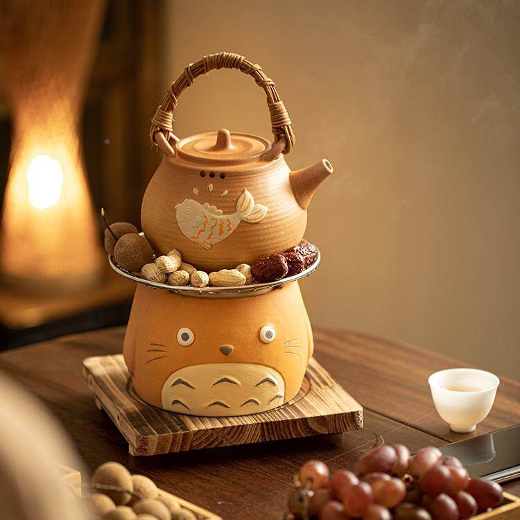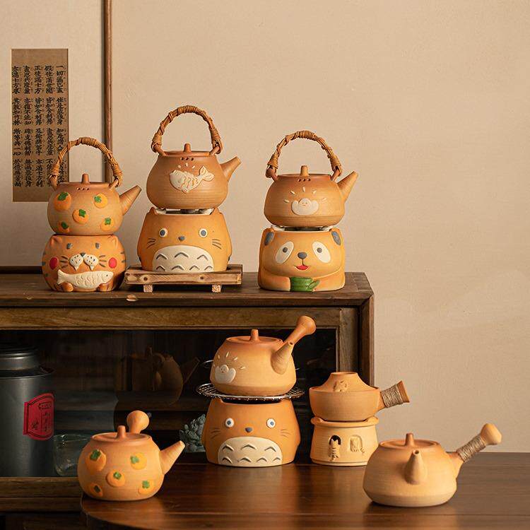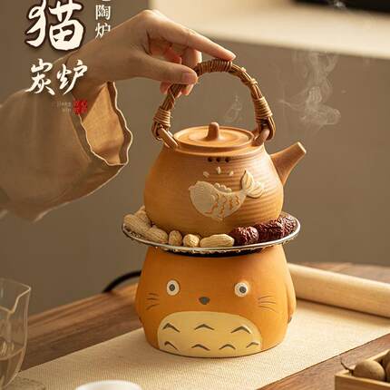 围熊炉梁煮茶龙猫炭炉可烧干粗陶防烫提壶家用猫089小型茶炉