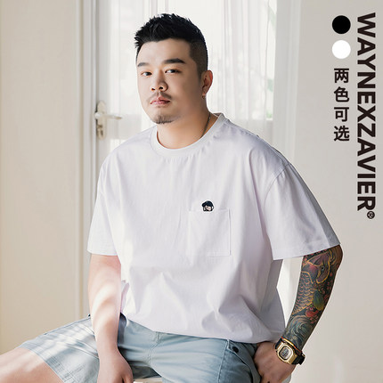 韦恩泽维尔大码重磅T恤男宽松夏季加肥加大圆领五分袖刺绣潮8704