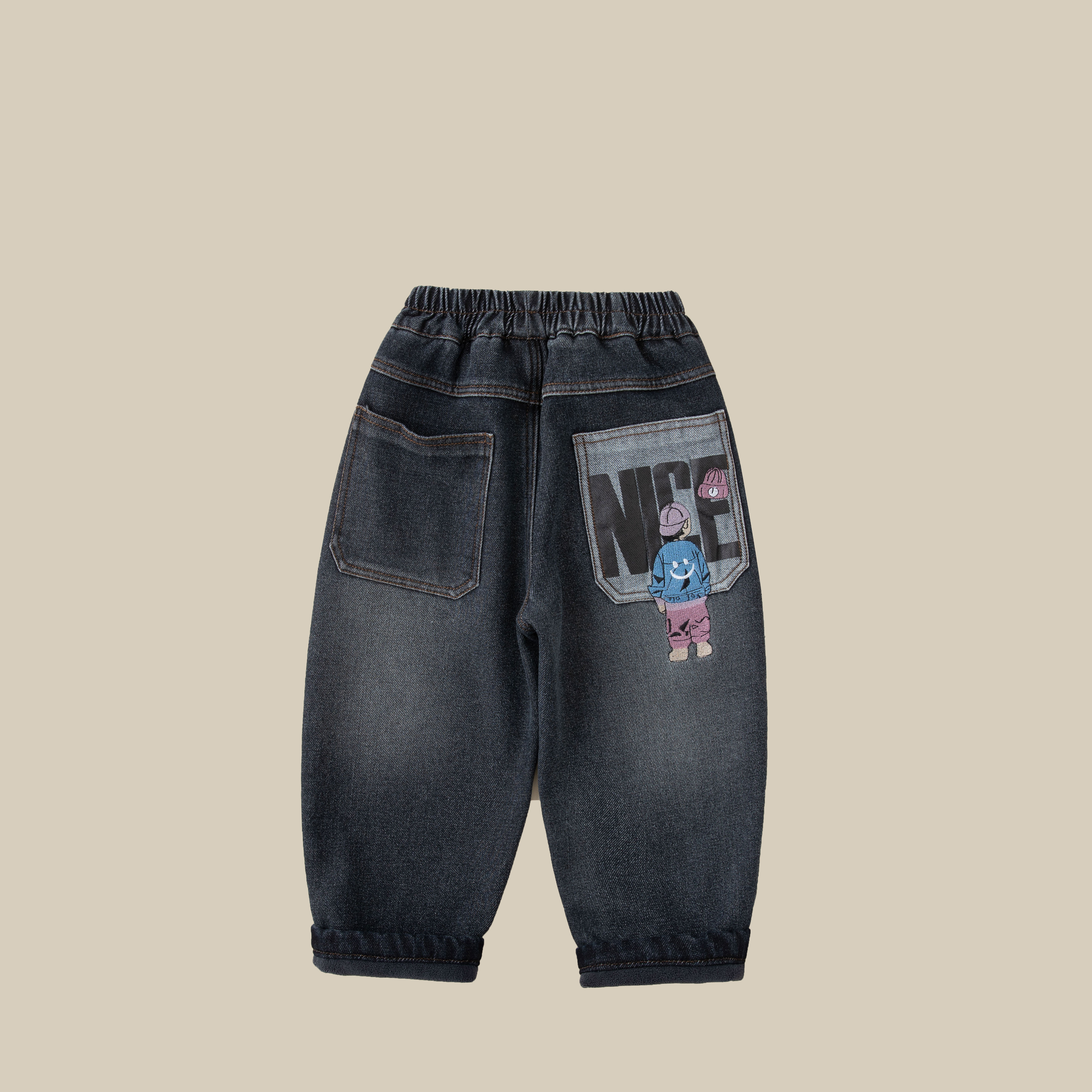 儿童加绒裤2025新款男童冬款潮流时尚休闲牛仔裤DE7507华子童装