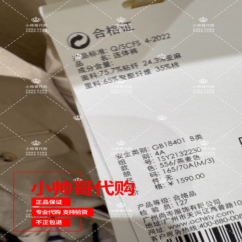 现货 1SY2132230 4A 欧时力 2025年夏季专柜正品短袖翻领连体裤