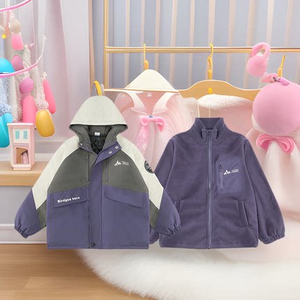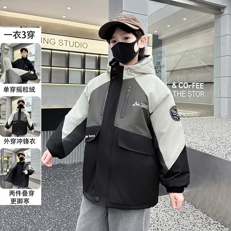 男童外套三合一可拆卸冬季儿童冲锋衣男孩加绒加棉春秋冬2025