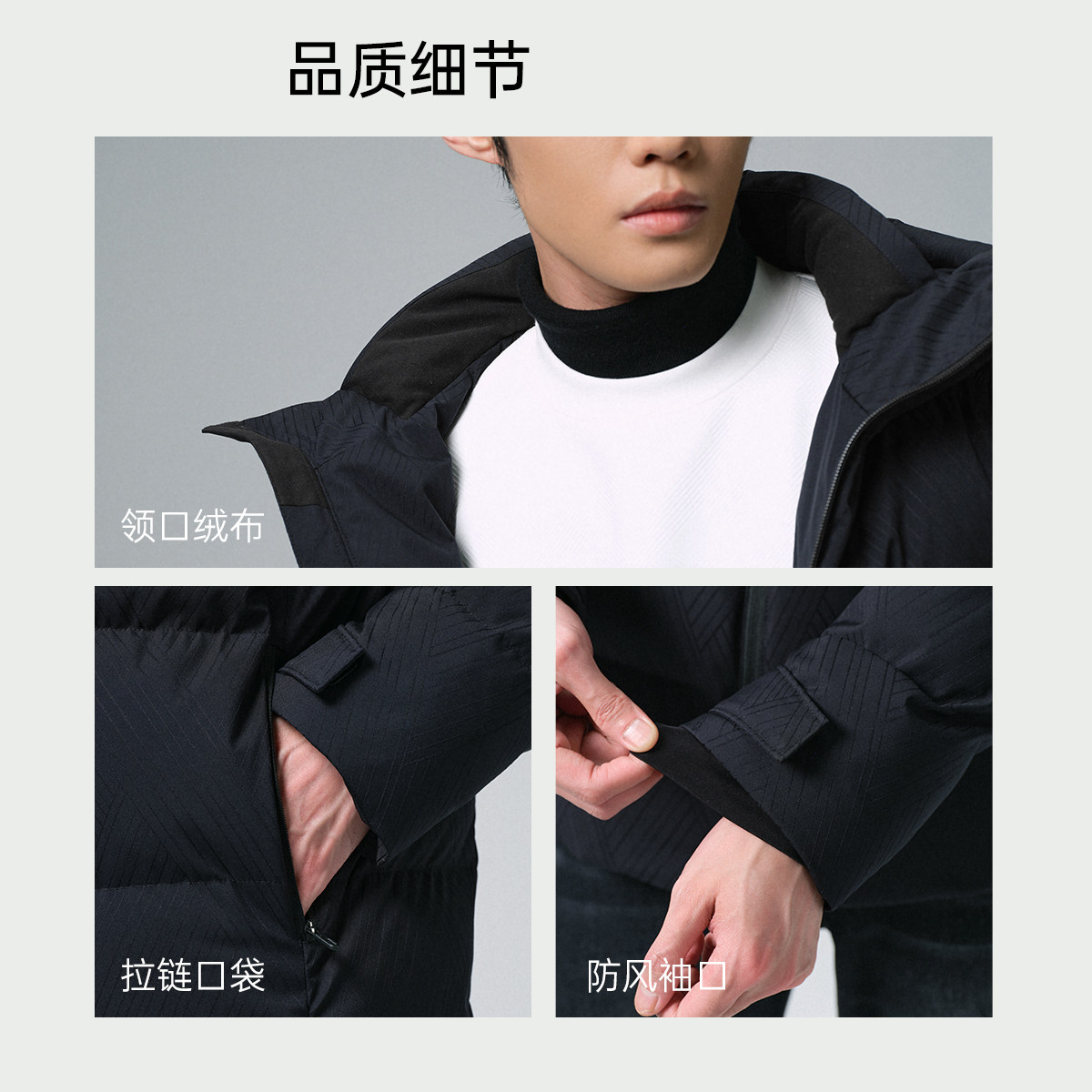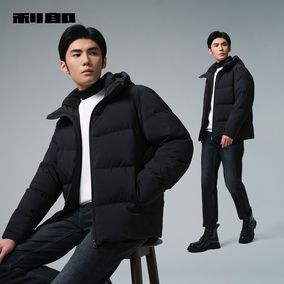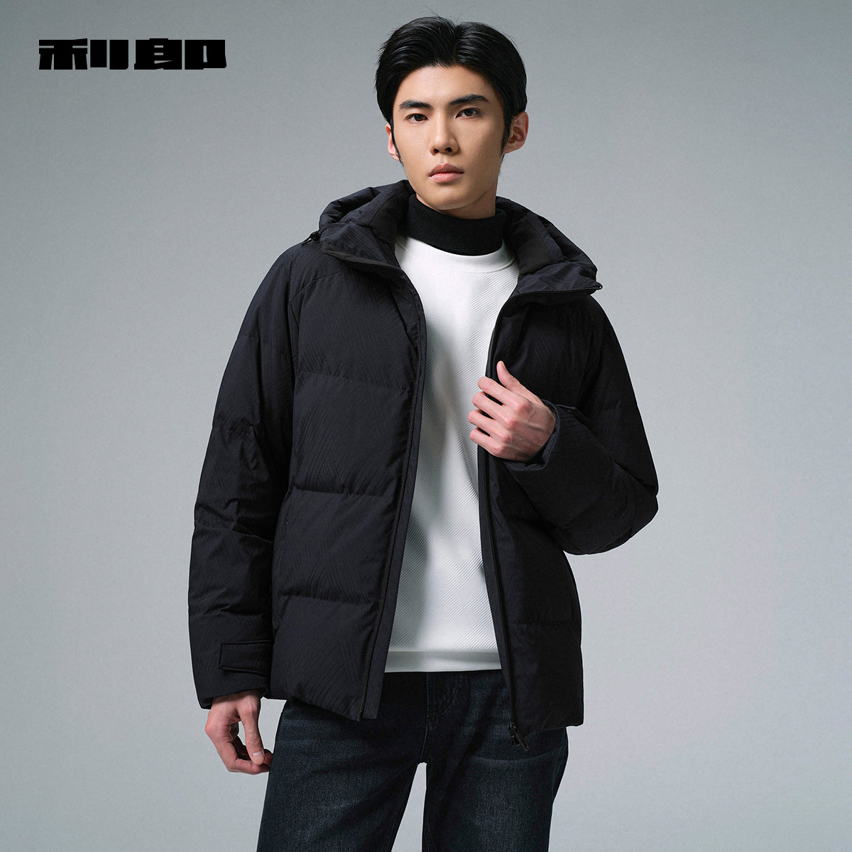 利郎官方白鸭绒连帽肌理羽绒服