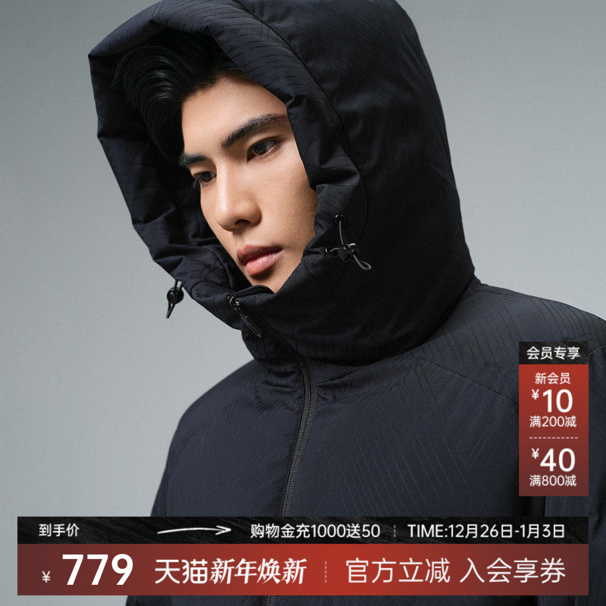 利郎官方 羽绒服男士2025冬季休闲男装白鸭绒连帽肌理保暖外套男