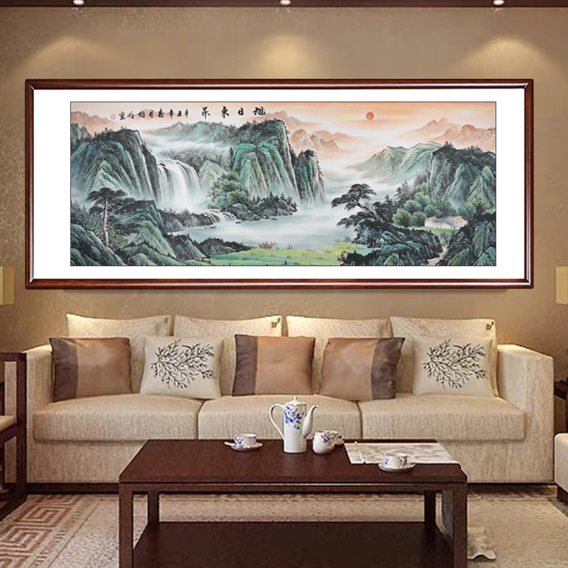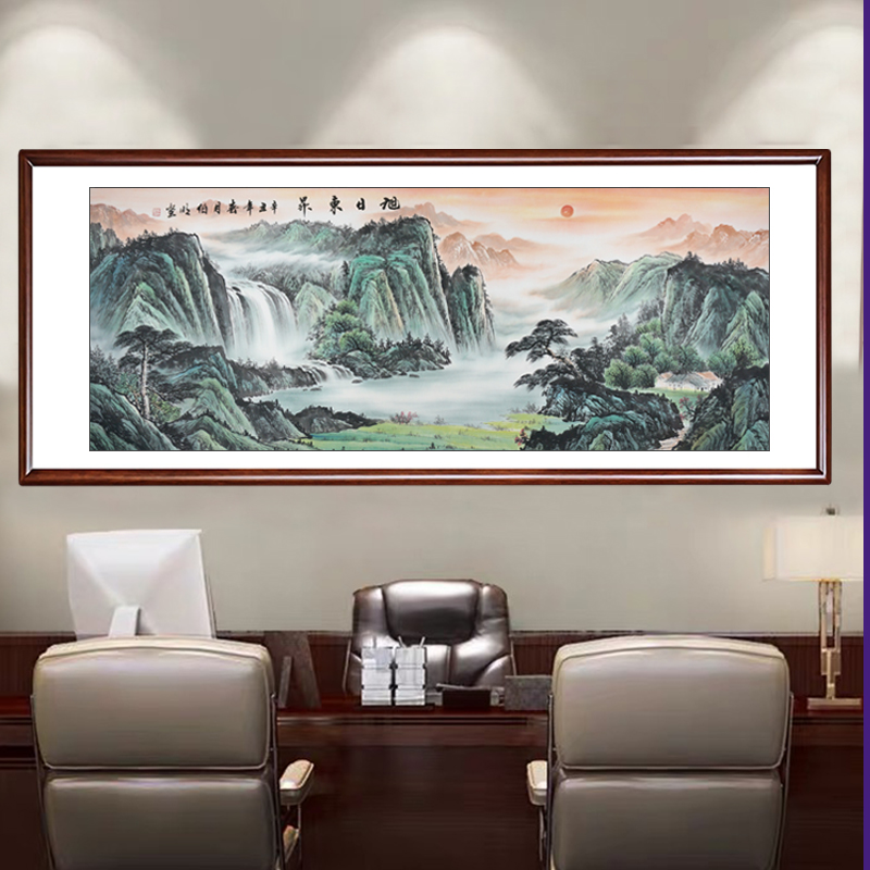 旭日东升山水画客厅背景墙壁画风水画字画日出东方挂画手绘聚宝盆